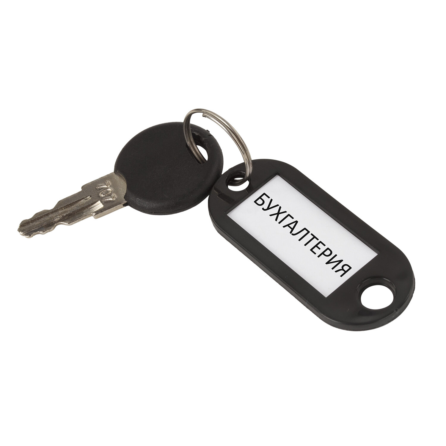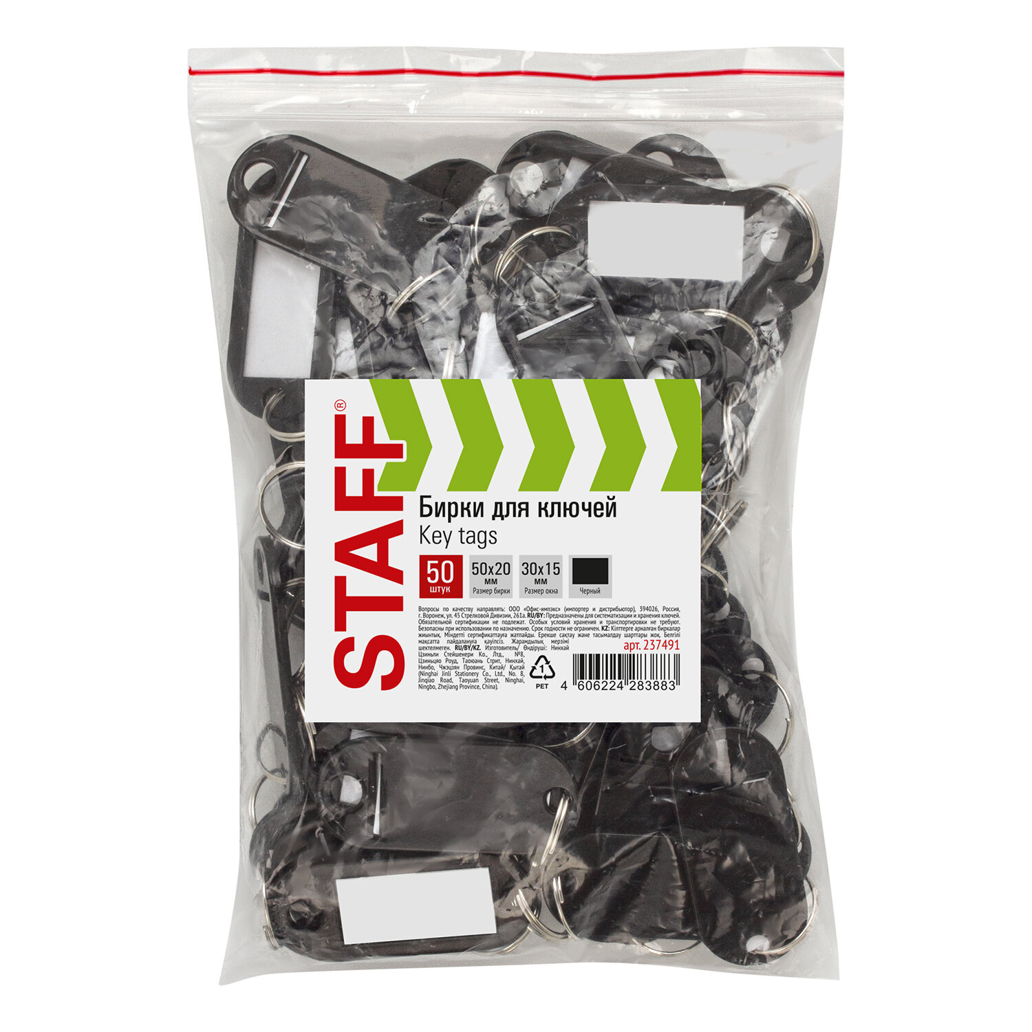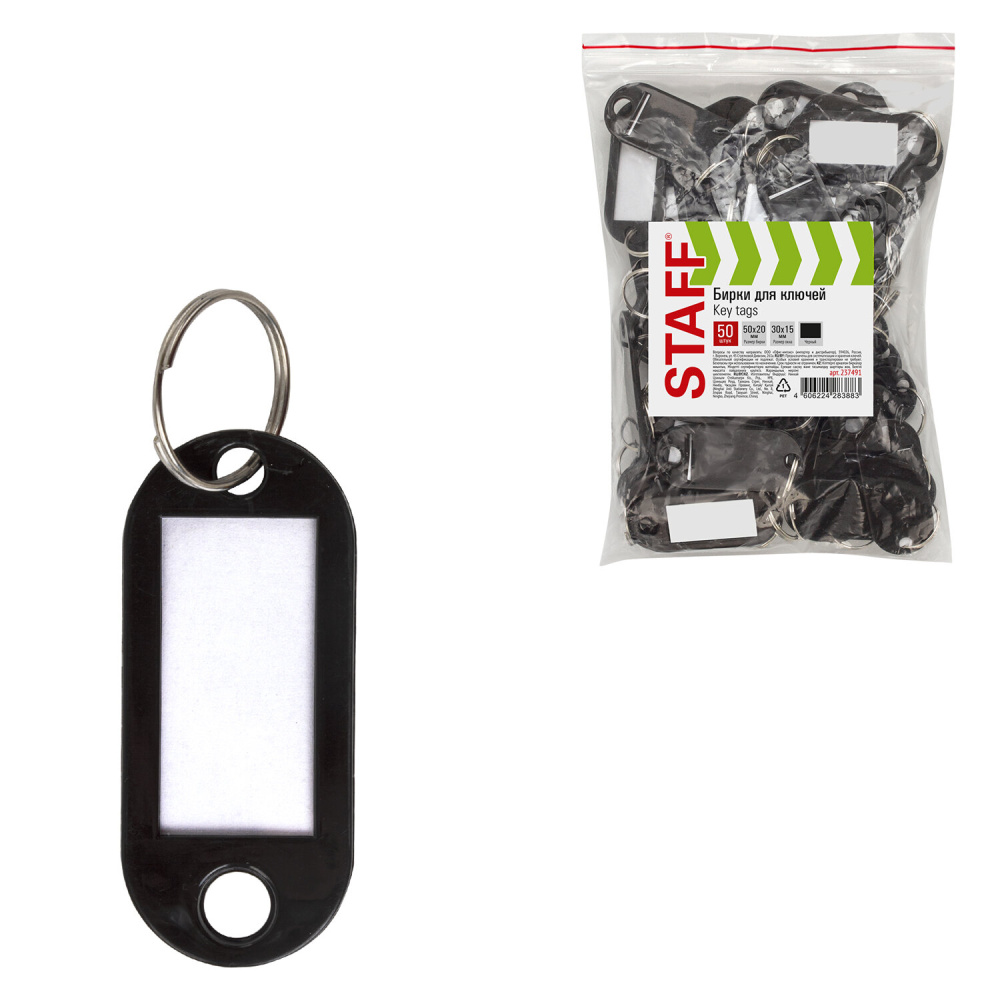 Бирки для ключей КОМПЛЕКТ 50 ШТ., длина 50 мм, инфо-окно 30х15 мм, ЧЕРНЫЕ, STAFF, 237491