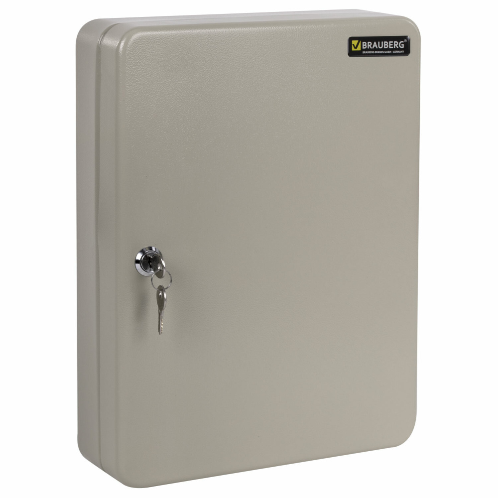 Шкафчик (Ключница) на 140 ключей BRAUBERG, 370х280х80 мм, с замком, +140 брелоков, серый, 290340