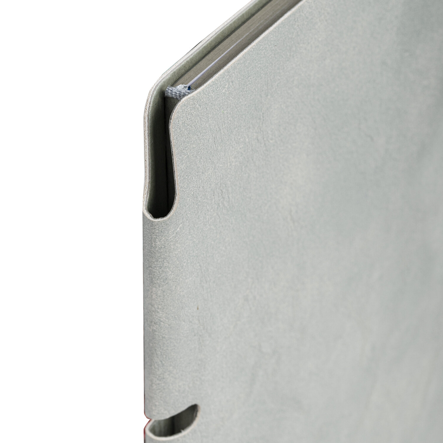 Для удобства пользования блокнот снабжен карманом для фиксации ручки. Дополнением являются 2 закладки-ляссе, с помощью которых можно быстро открыть нужные страницы. Формат блокнота А5 (140х200 мм) позволит владельцу поместить его в кейс или сумку малых габаритов.