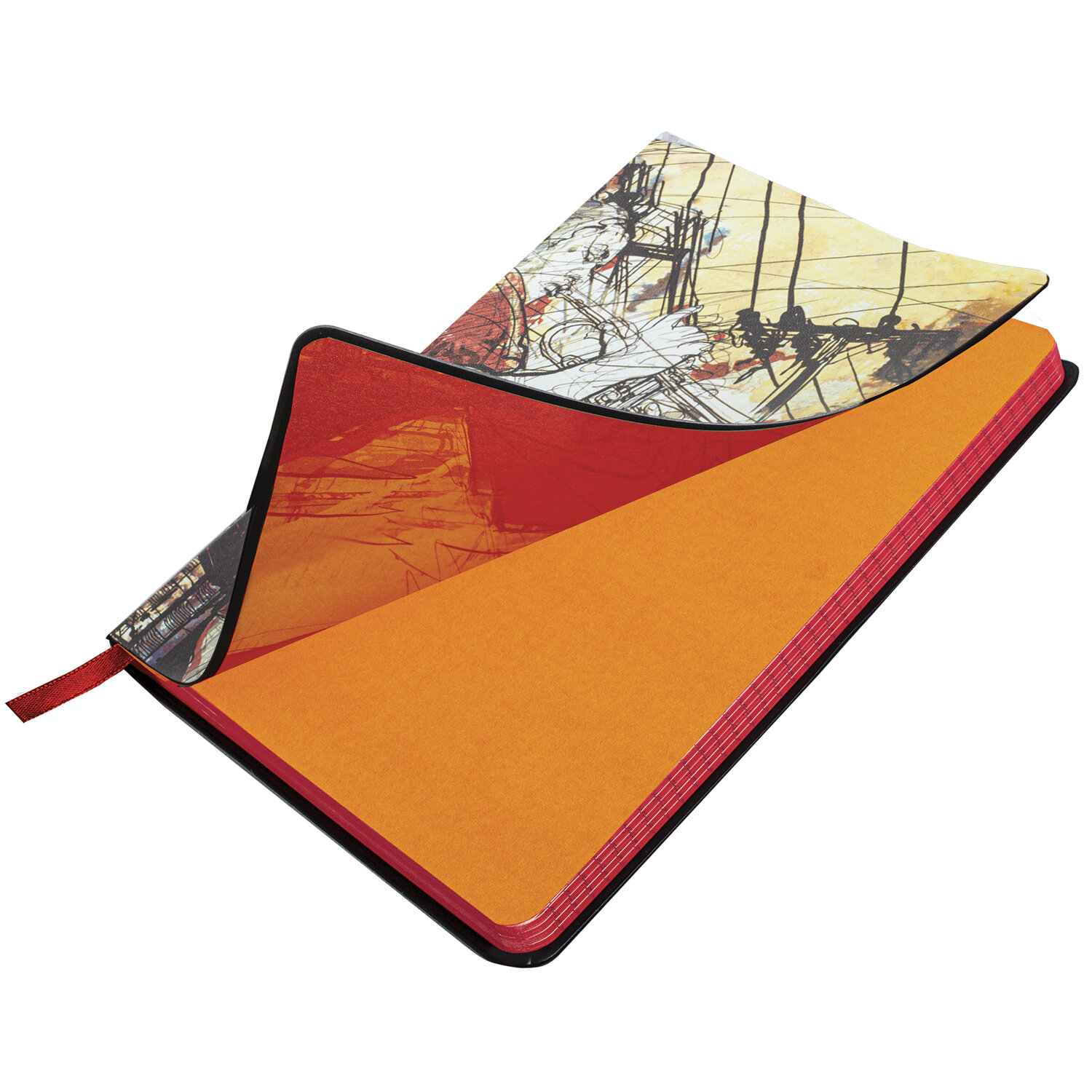 Внутренний блок включает 80 листов тонированной бумаги цвета "слоновая кость" плотностью 70 г/м2. Благодаря стандартному формату А5 блокнот удобно использовать как в офисе, так и на выездных деловых встречах. Интегральная (мягкая) обложка с полноцветной печатью делает блокнот неповторимым и запоминающимся. Срез блокнота прокрашен, что придает ему особый шарм. Дополнением является закладка-ляссе, с помощью которой можно быстро открыть блокнот на нужной странице.