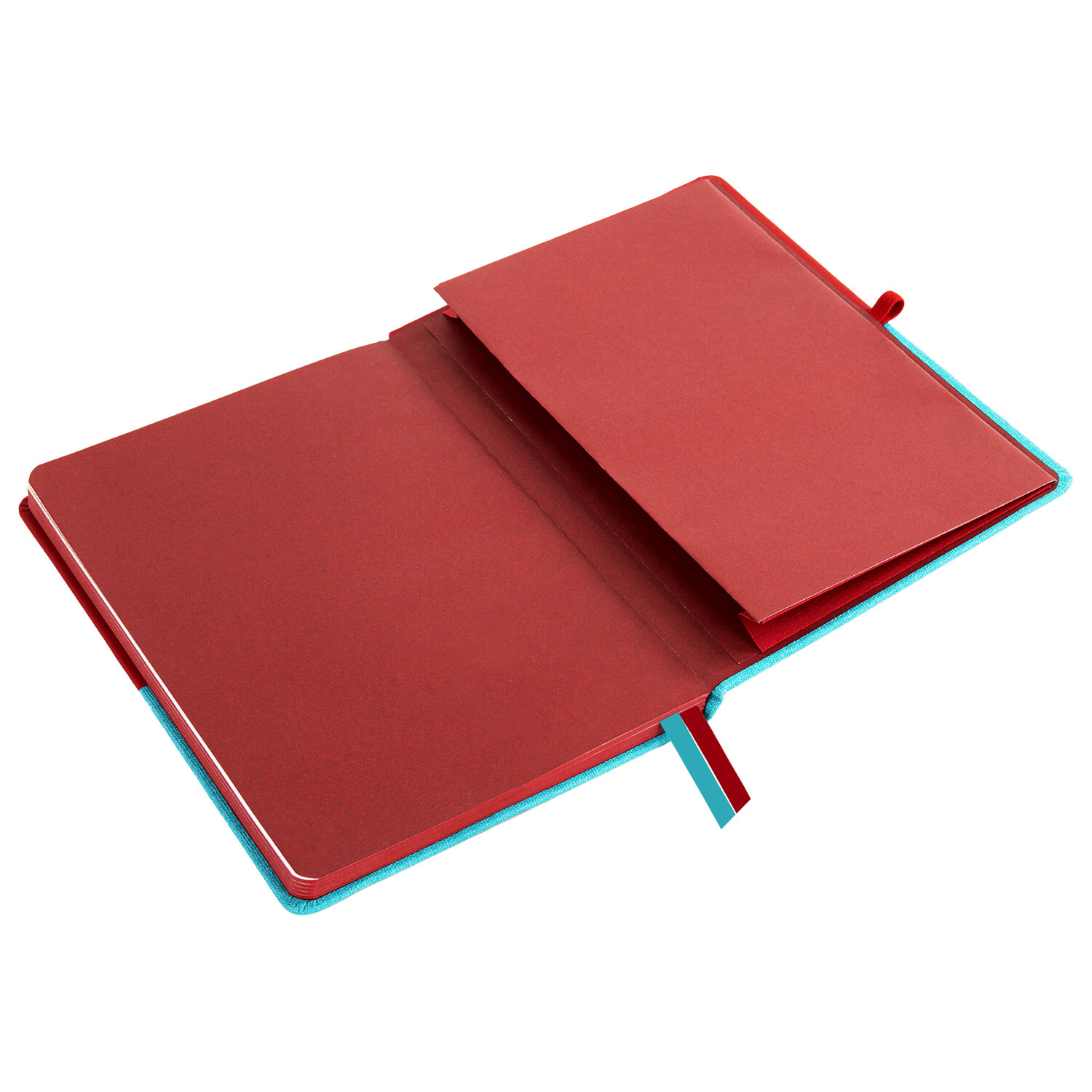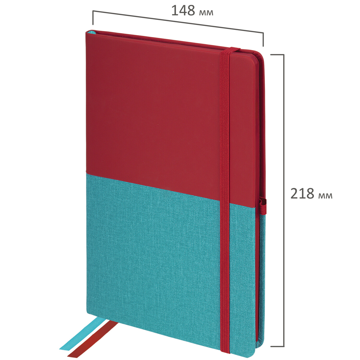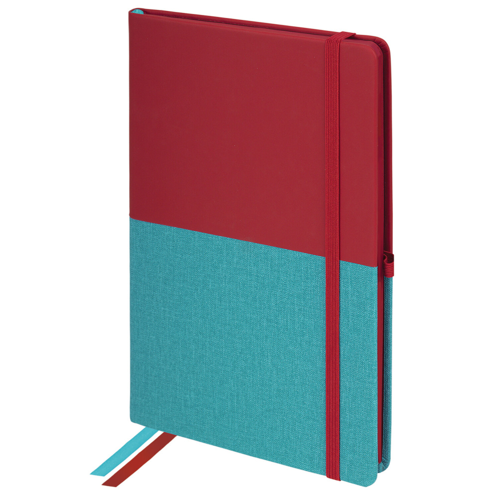 Блокнот А5 (148х218 мм), BRAUBERG "DUO", под кожу с резинкой 80 л., клетка, красный/бирюзовый, 113431