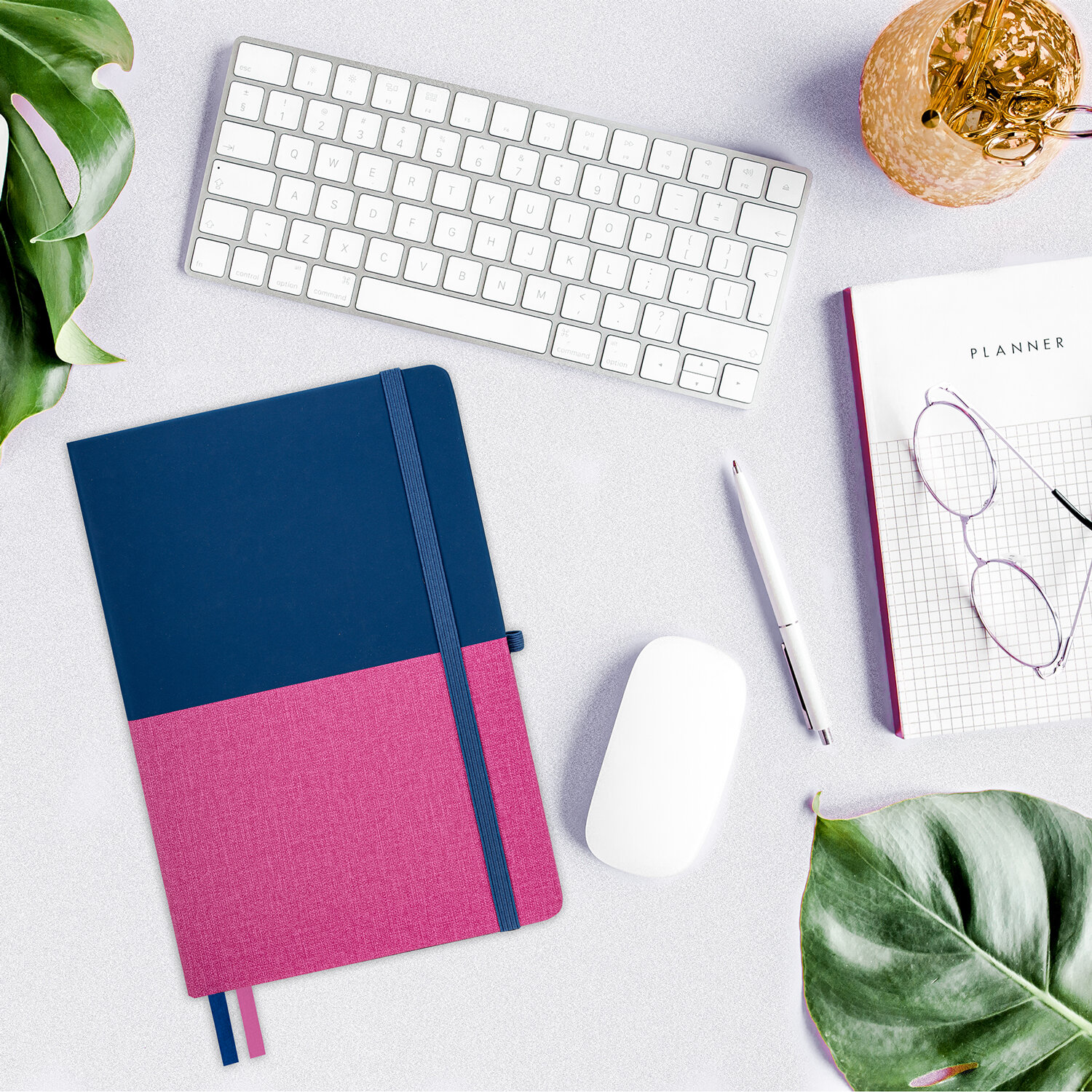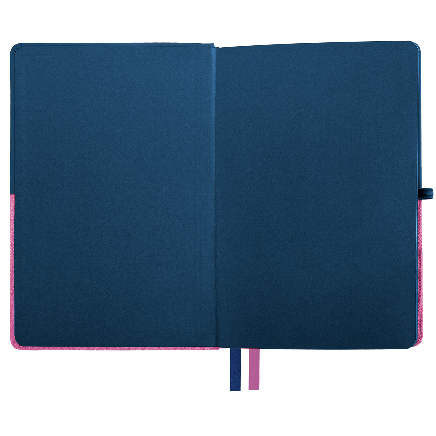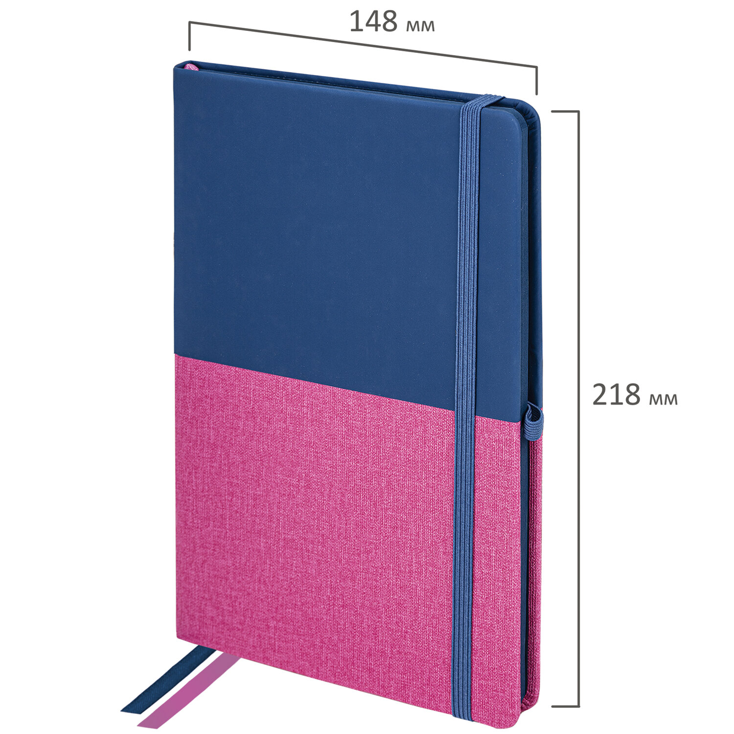 Блокнот А5 (148х218 мм), BRAUBERG "DUO", под кожу с резинкой, 80 л., клетка, синий/розовый, 113434