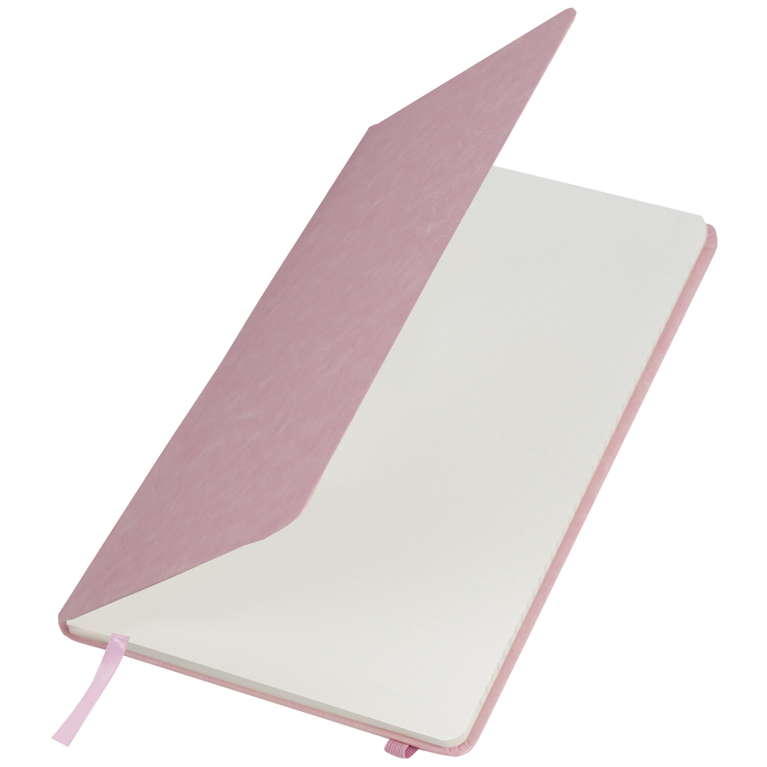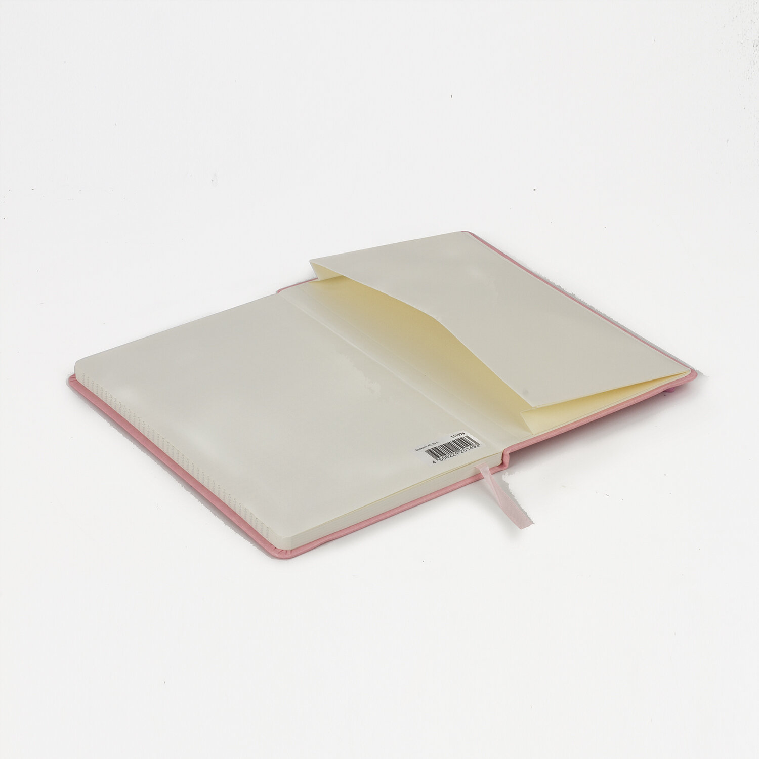 Твердая обложка стилизована под "гладкую кожу". Имеет закругленные уголки, подходит для горячего тиснения и имеет резинку-фиксатор, благодаря чему не раскроется в сумке или портфеле и листы не помнутся. На внутренней стороне задней обложке есть декоративный конверт для разных мелочей в виде визиток, напоминалок или других милых и полезных мелочей. 80 листов позволят зафиксировать большой объем информации. Линовка блока в клетку (5х5 мм) дает возможность аккуратно заполнить цифровые значения, а также нанести чертежные зарисовки. Внутренний блок выполнен из офсета цвета слоновой кости плотностью 70 г/м2 и крепится к обложке с помощью книжного переплета. Дополнением является закладка-ляссе, с помощью которой при необходимости можно быстро открыть нужную страницу. Формат блокнота А5 (148х218 мм) позволит владельцу поместить его в кейс или сумку малых габаритов.