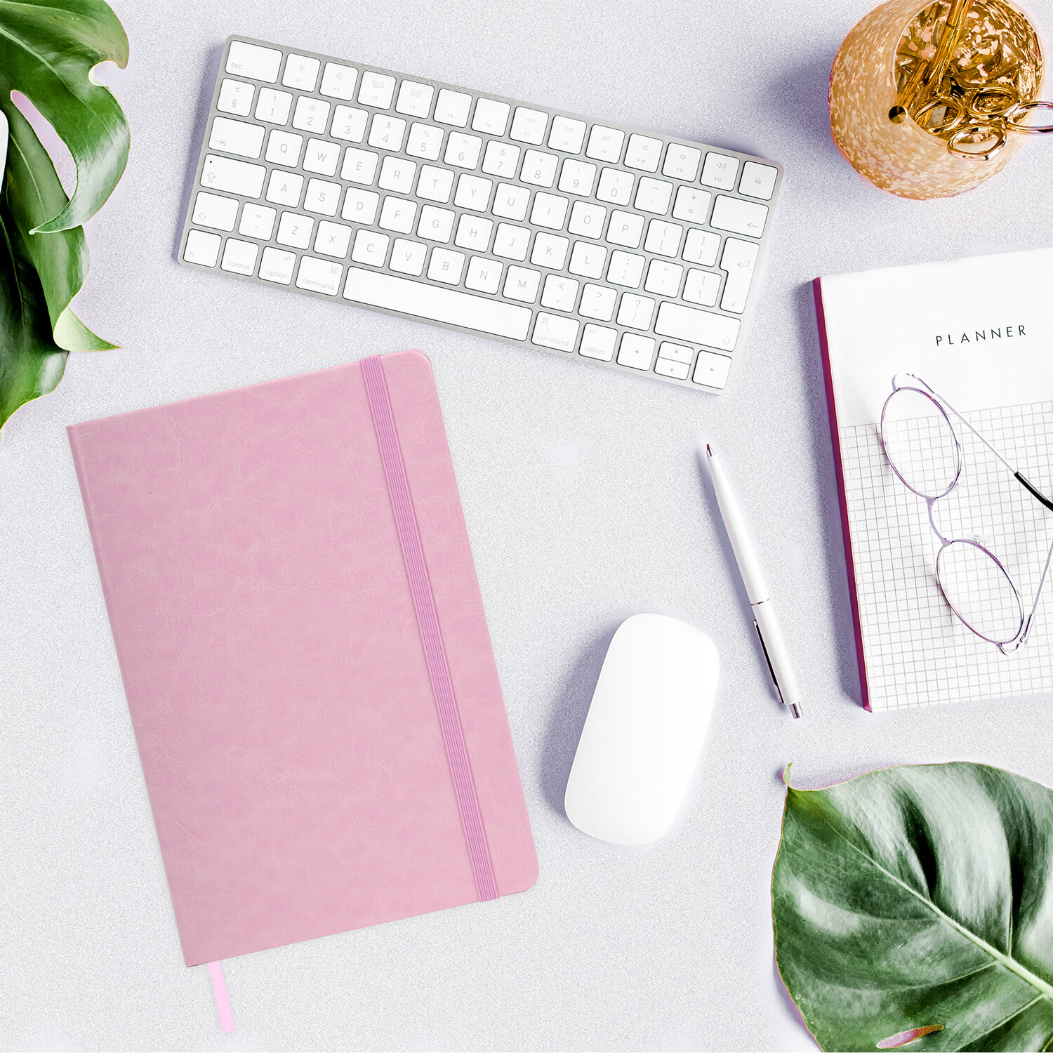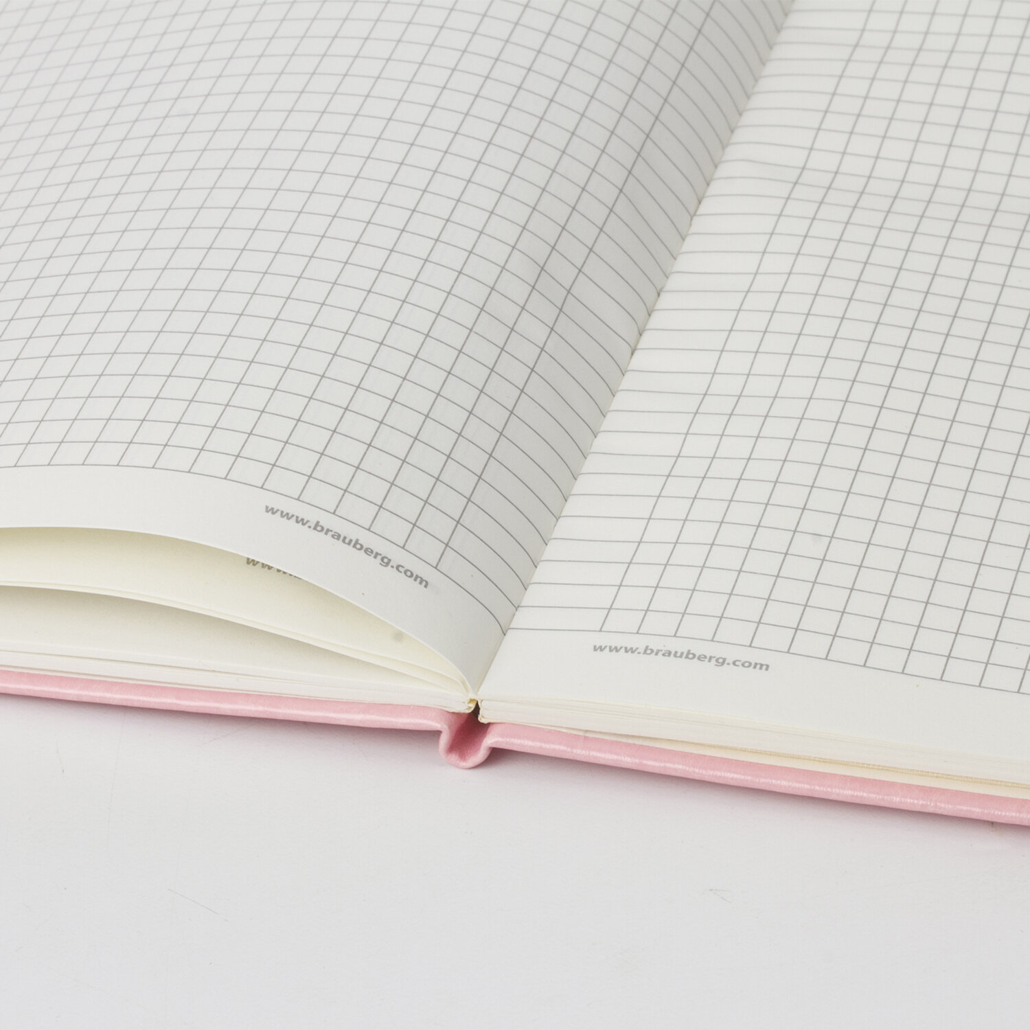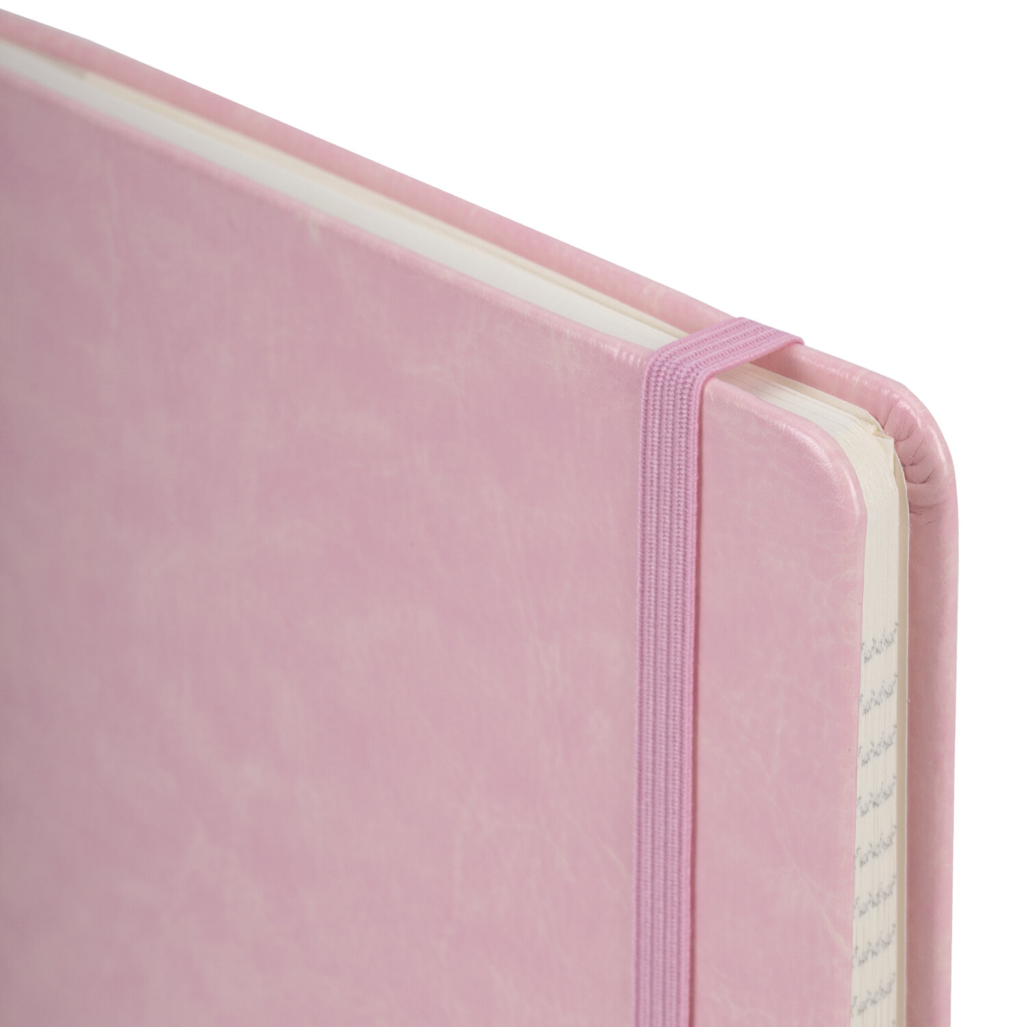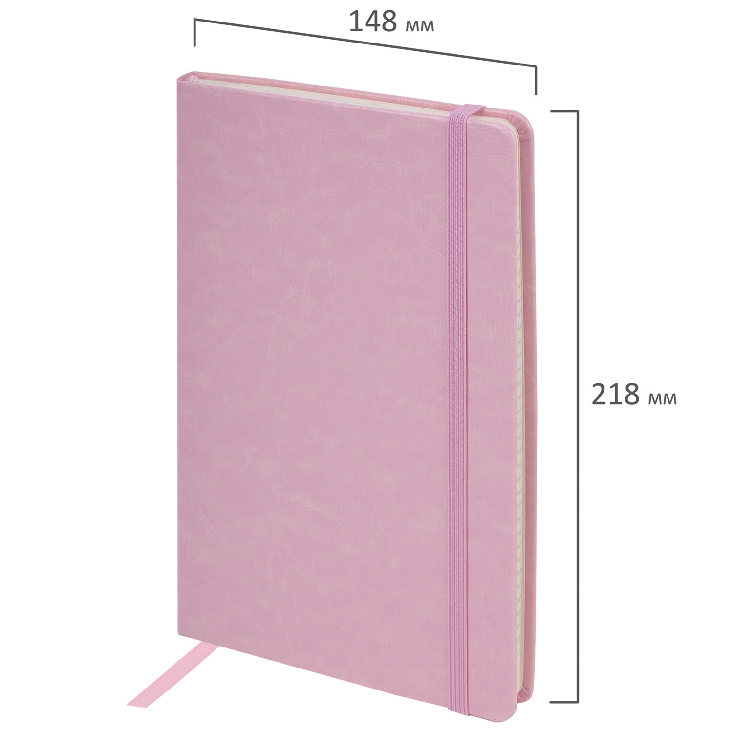 Блокнот А5 (148x218 мм), BRAUBERG "Metropolis Special", под кожу, 80 л., резинка, клетка, розовый, 111579