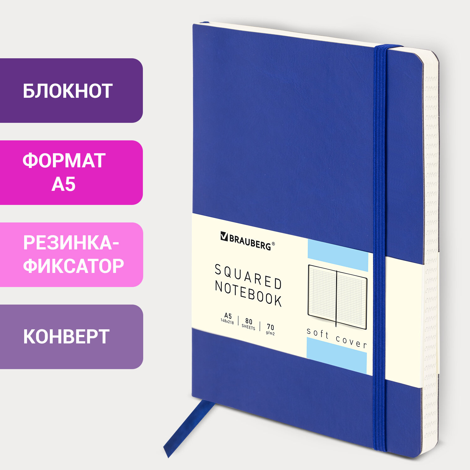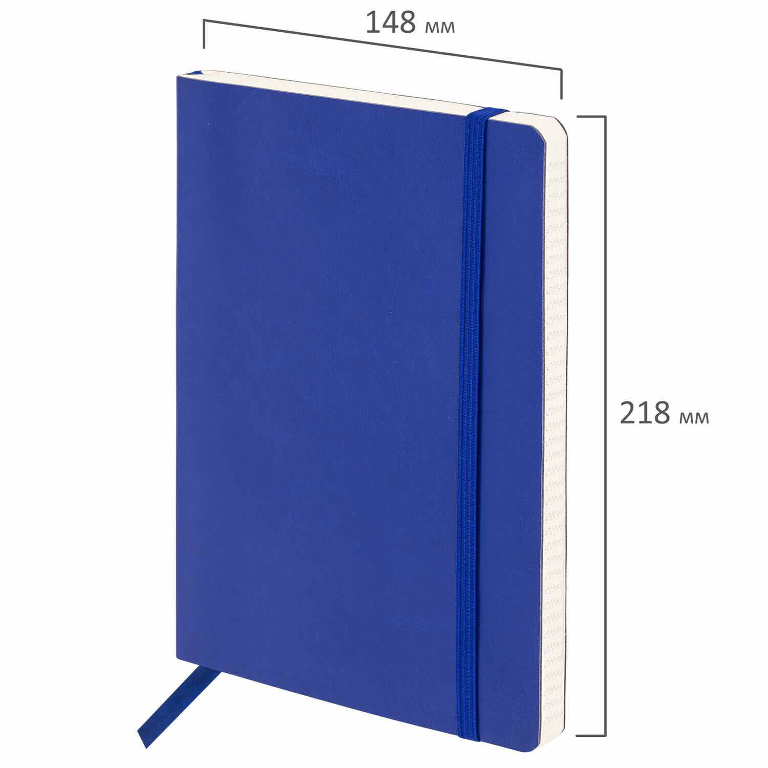 Блокнот А5 (148x218 мм), BRAUBERG "Metropolis Ultra", под кожу, 80 л., резинка, клетка, синий, 111017
