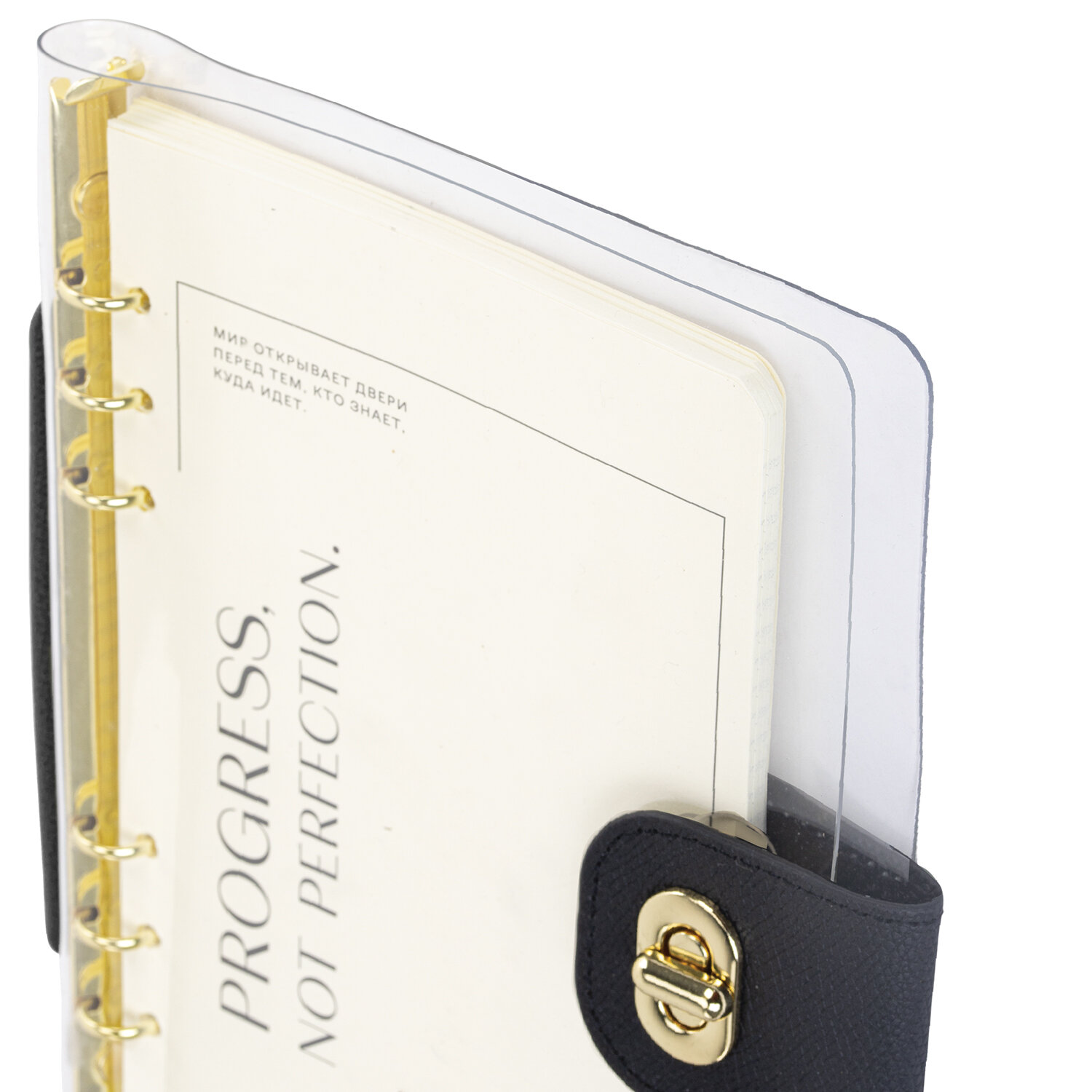 Бизнес-блокнот имеет гибкую прозрачную пластиковую обложку и золотистые детали, что придает ему стильный и оригинальный вид. Имеет закругленные уголки. 80 листов позволят зафиксировать большой объем информации. Линовка блока в клетку (5х5 мм) дает возможность аккуратно заполнить цифровые значения, а также нанести чертежные зарисовки. Внутренний блок выполнен из офсета кремового цвета плотностью 70 г/м2.