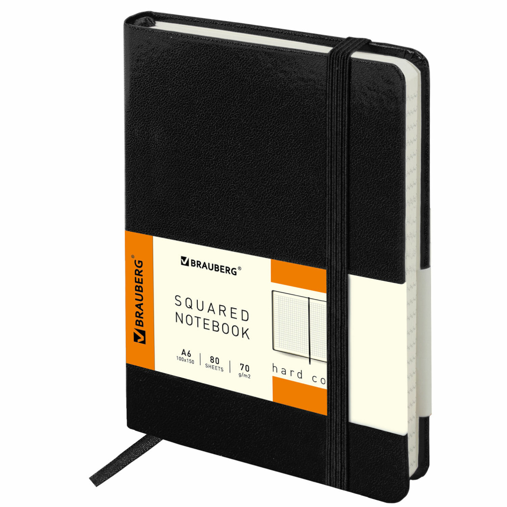 Блокнот МАЛЫЙ (100x150 мм) А6, BRAUBERG "Metropolis", балакрон, резинка, клетка, черный, 111589