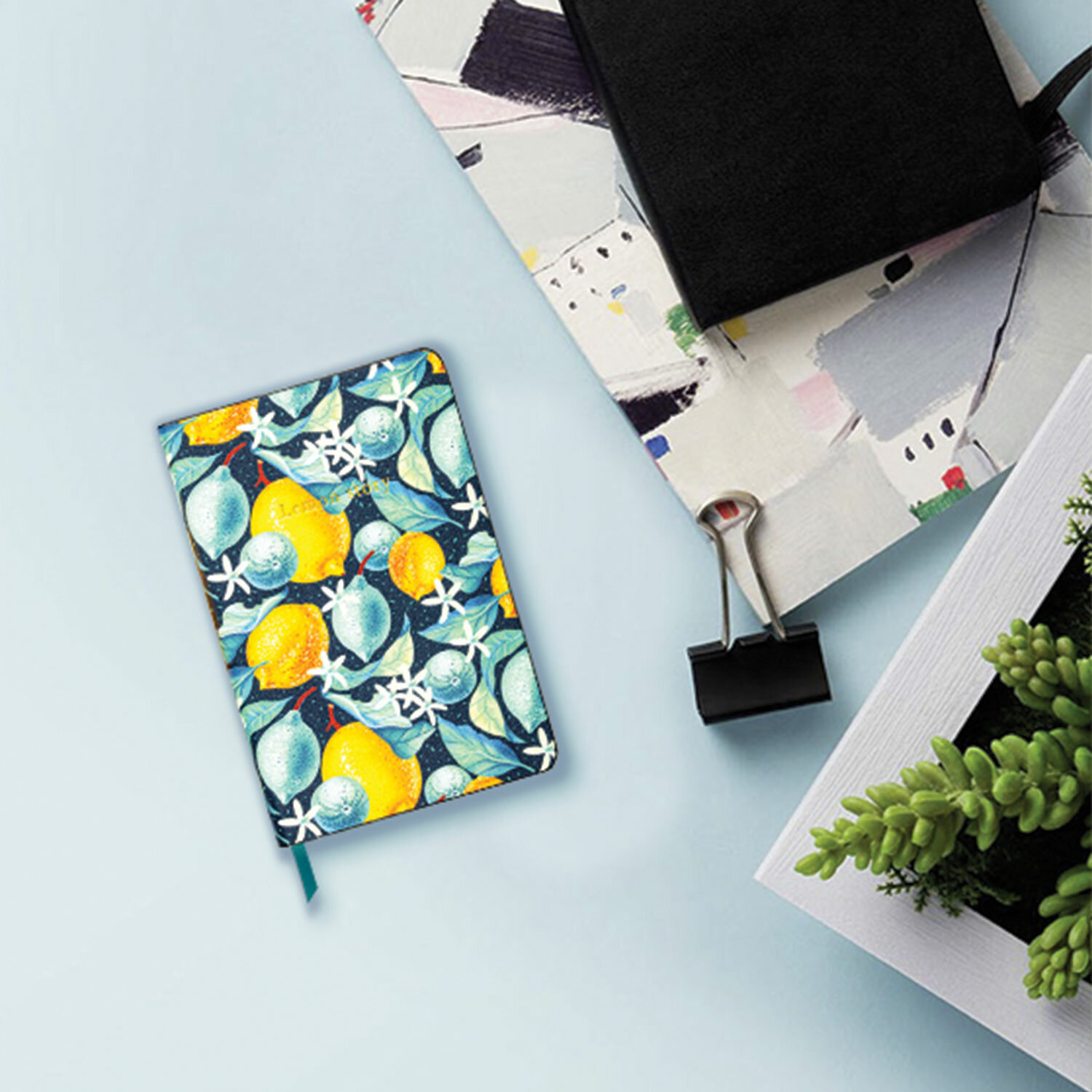 Блокнот МАЛЫЙ ФОРМАТ (100х150 мм) А6, BRAUBERG VISTA "Lemon Story", под кожу, гибкий, срез фольга, 80 л., 112096