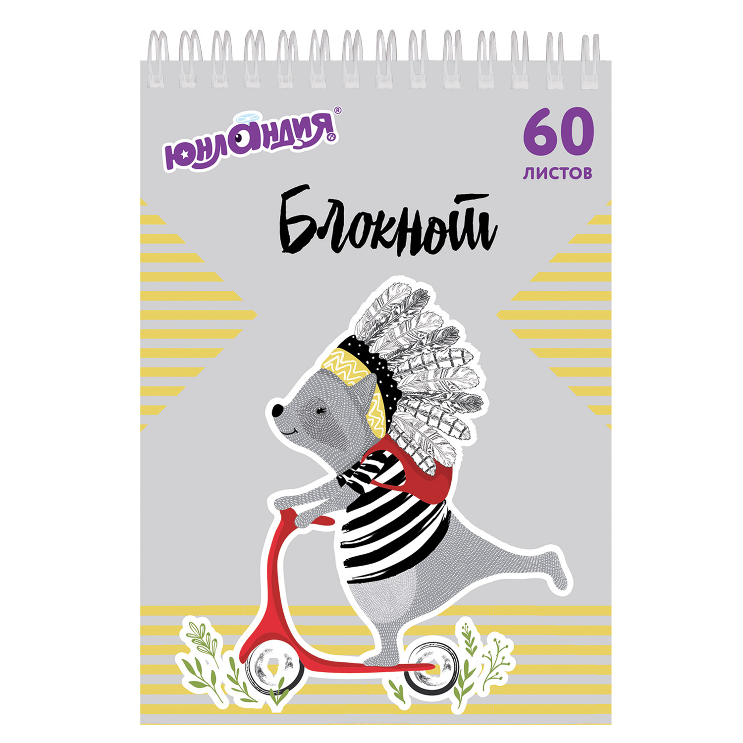 Блокнот А5 146х205 мм, 60 л., гребень, картон, клетка, ЮНЛАНДИЯ, "Непоседы", 129815