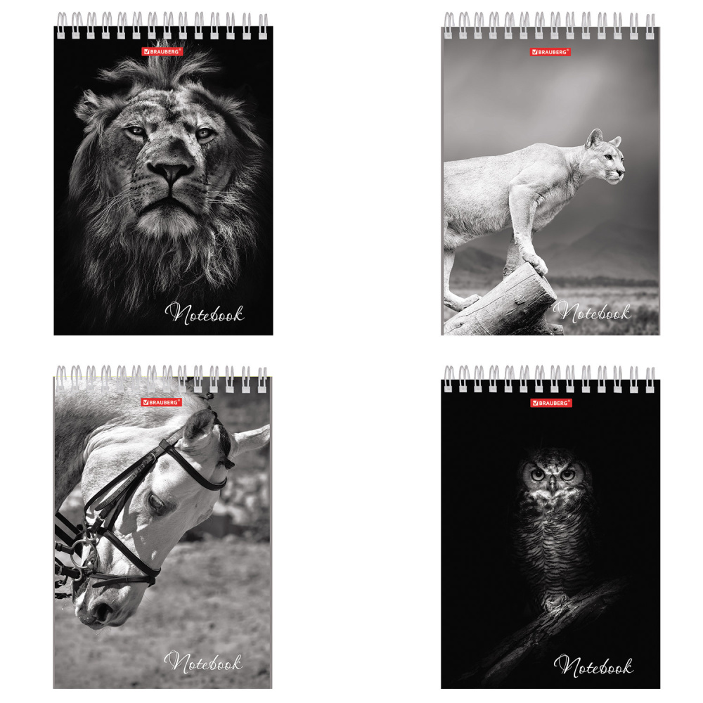 Блокнот А5, 146х205 мм, 60 л., гребень, картон, жесткая подложка, клетка, BRAUBERG, "Животные", 129810