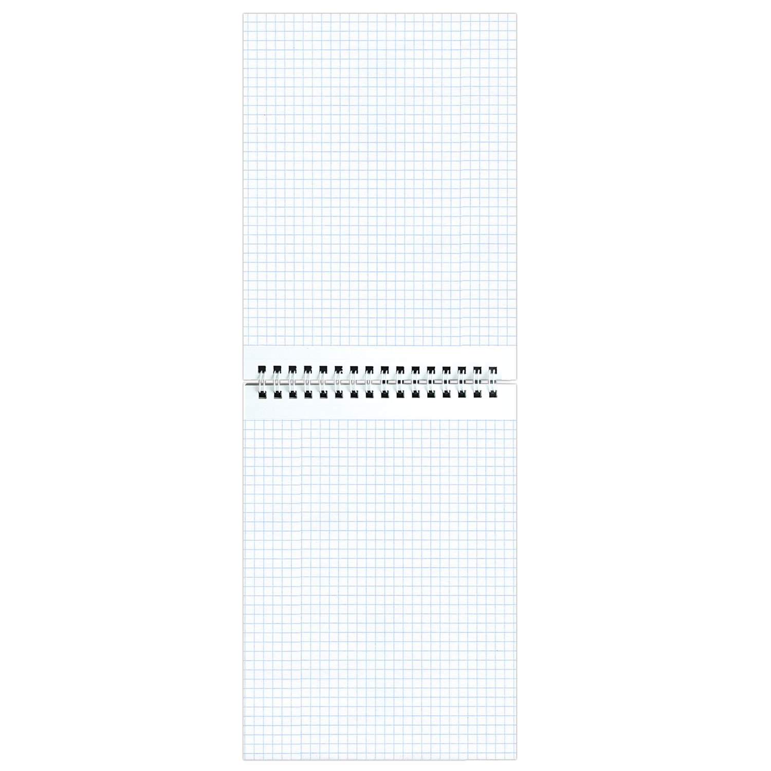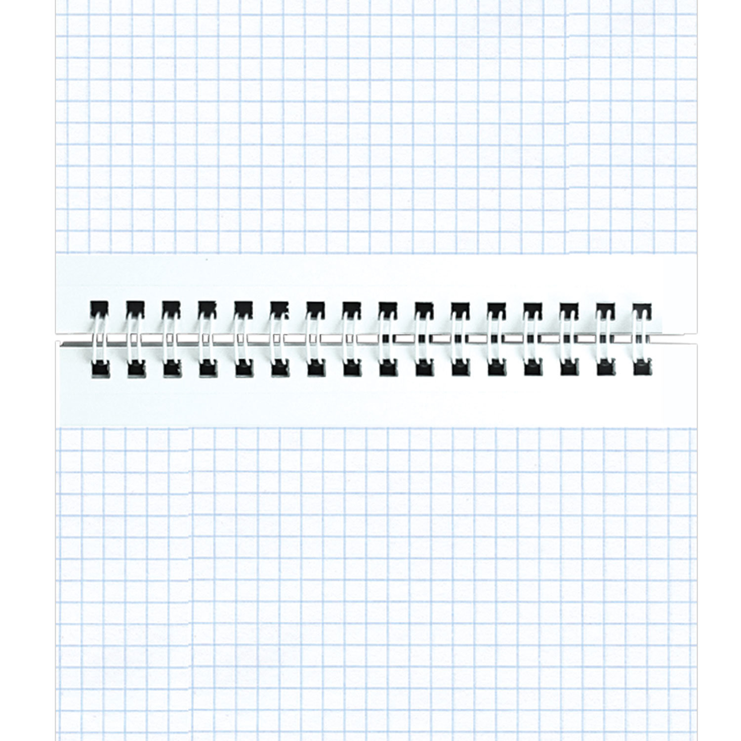 Блокнот формата А5 на евроспирали содержит 80 листов с линовкой в клетку, что позволяет зафиксировать большой объем нужной информации. Имеет жесткую подложку, позволяющую делать записи на весу и верхнее расположение переплета. Обложка выполнена из мелованного картона плотностью 200 г/м2. Внутренний блок состоит из белой офсетной бумаги плотностью 60 г/м2.