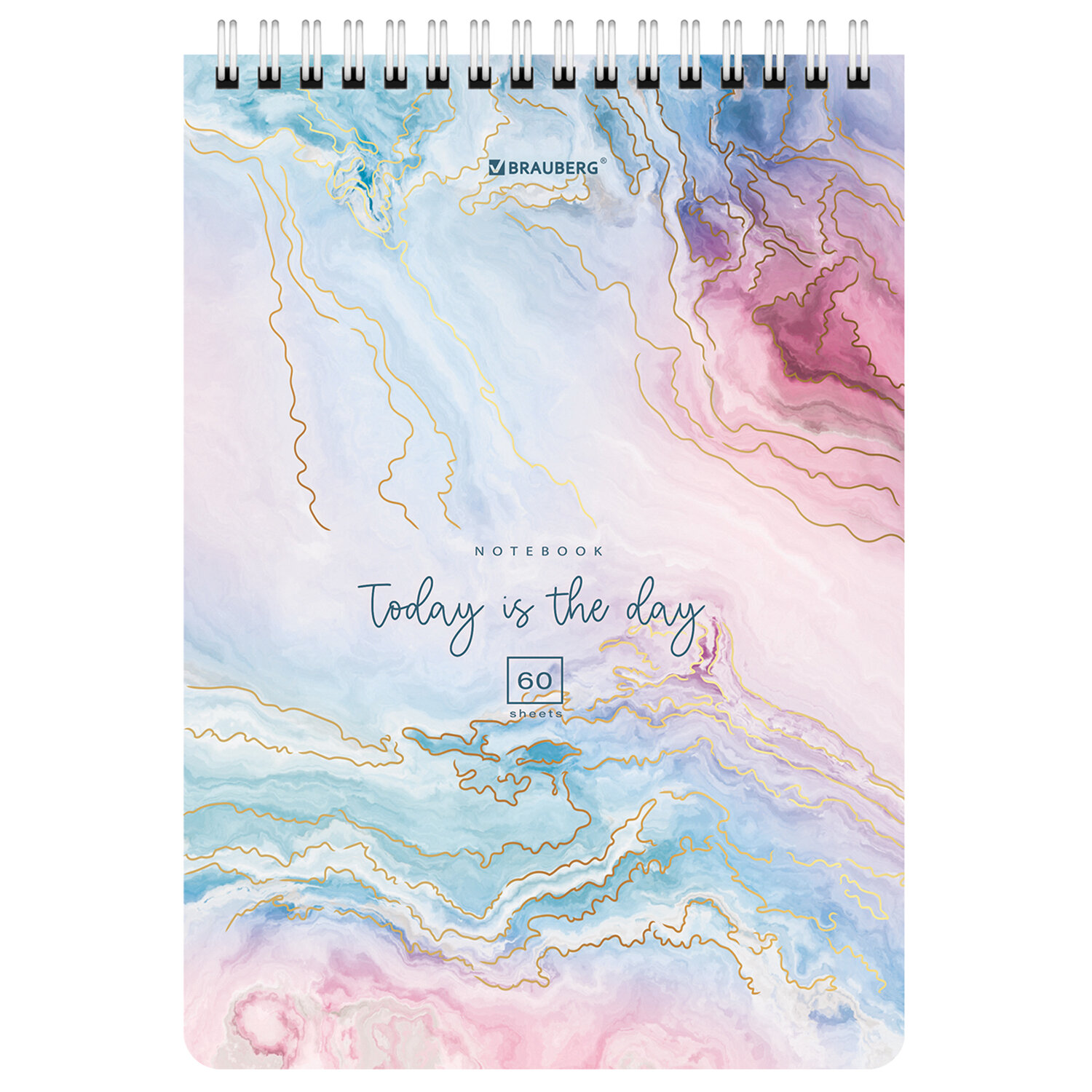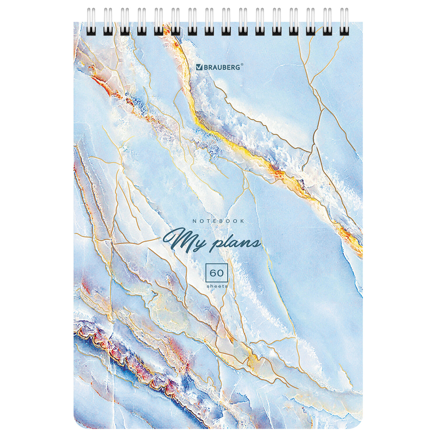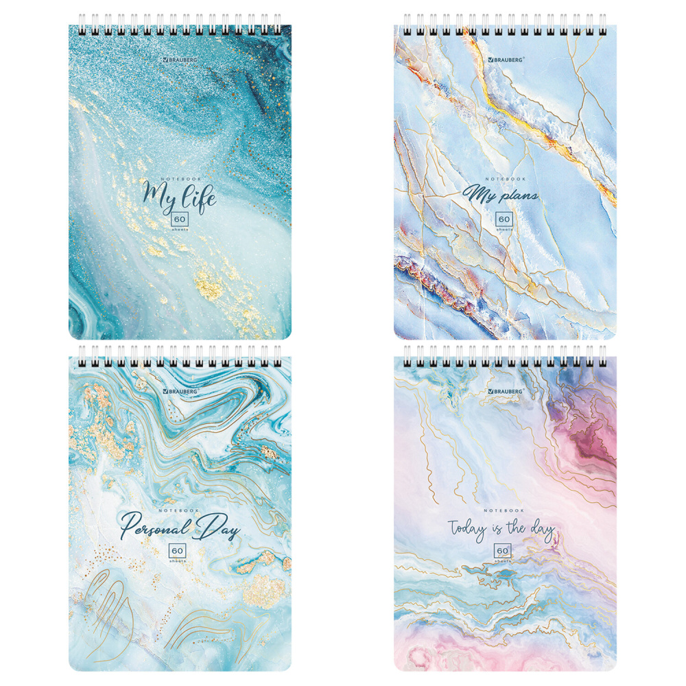 Блокнот А5 (146х206 мм), 60 л., гребень, картон, клетка, BRAUBERG, "Мрамор", 114360