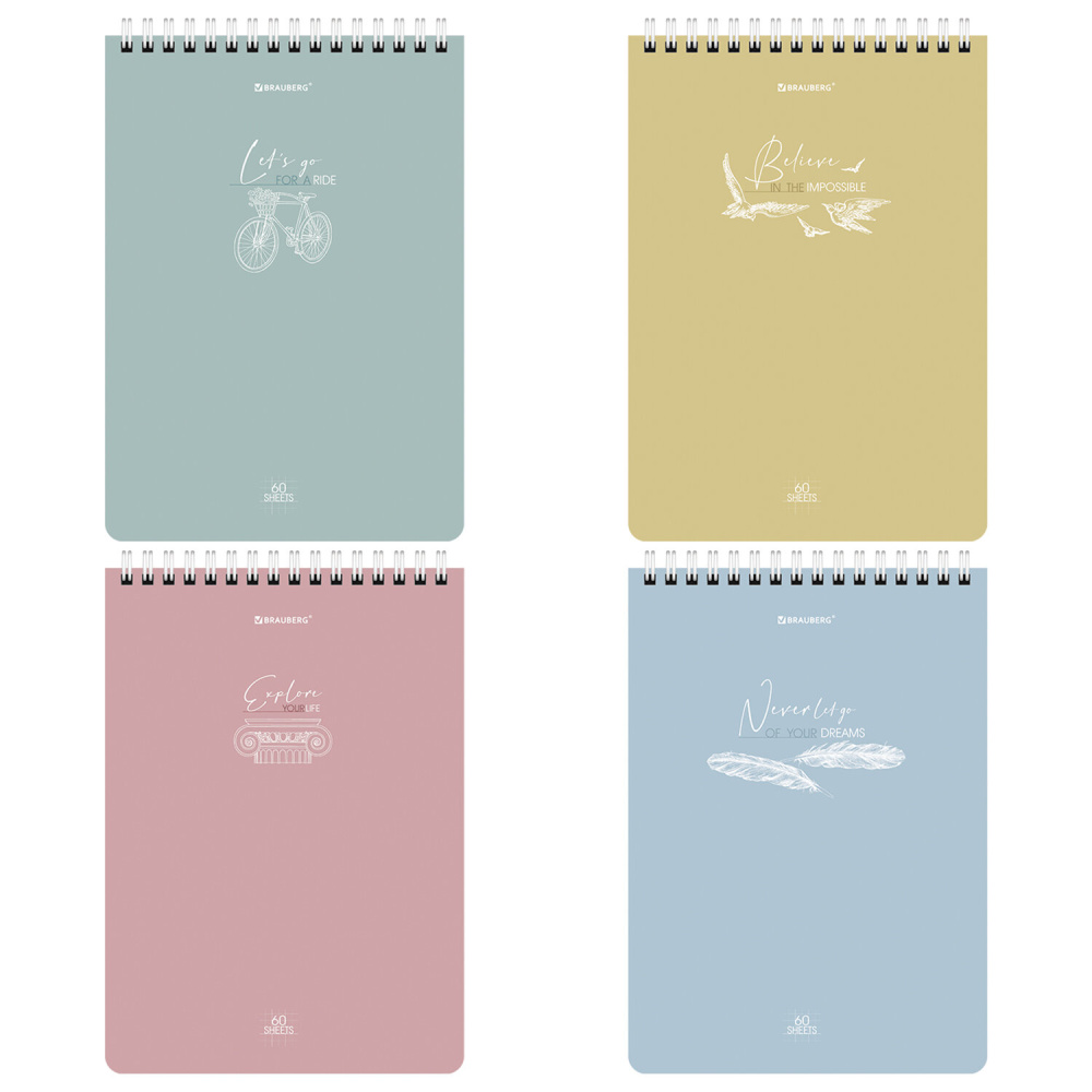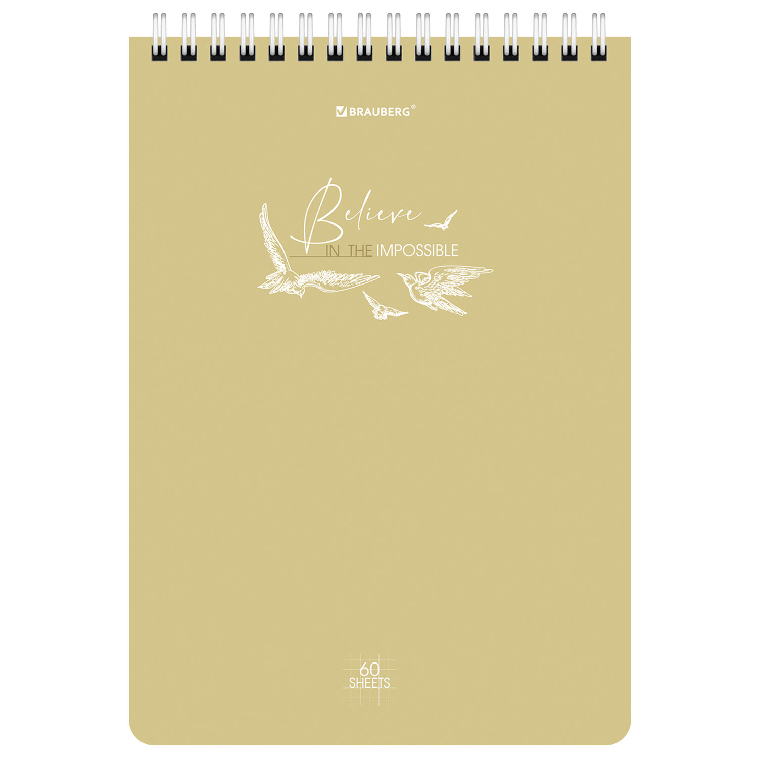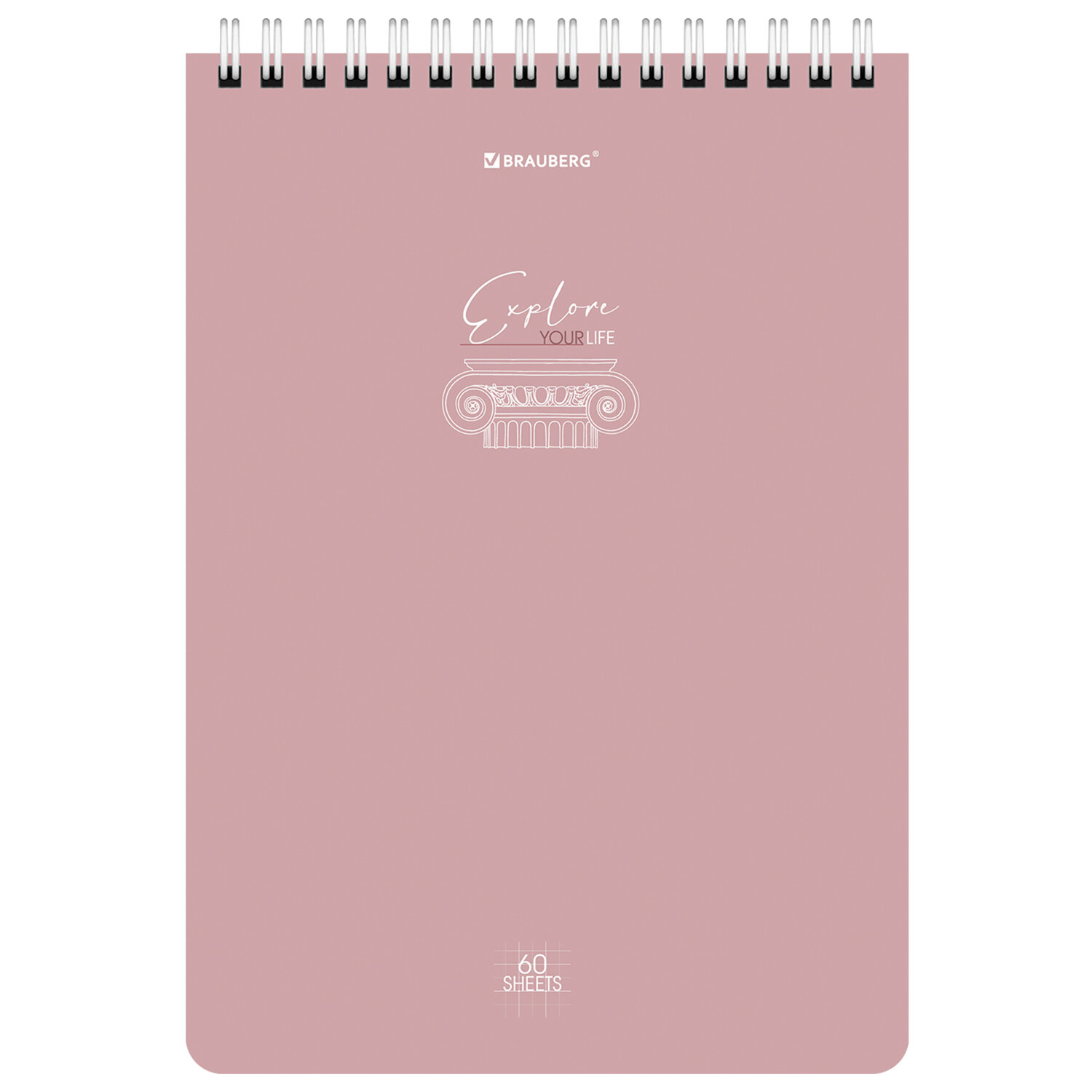 Блокнот А5 (146х206 мм), 60 л., гребень, картон, клетка, BRAUBERG, "Pastel", 114362