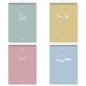 Блокнот формата А5 на евроспирали содержит 60 листов с линовкой в клетку, что позволяет зафиксировать большой объем нужной информации и дает возможность аккуратно заполнить цифровые значения, а также нанести чертежные зарисовки. Гребень расположен сверху. Обложка выполнена из мелованного картона плотностью 190 г/м2. Внутренний блок состоит из белой офсетной бумаги плотностью 60 г/м2.