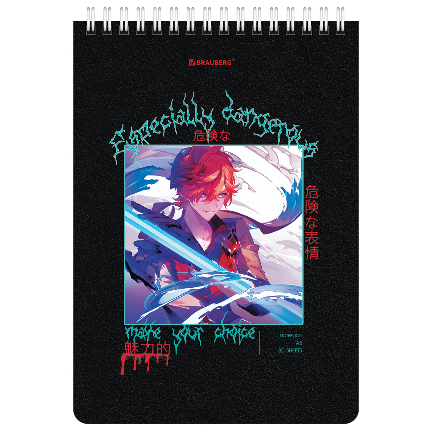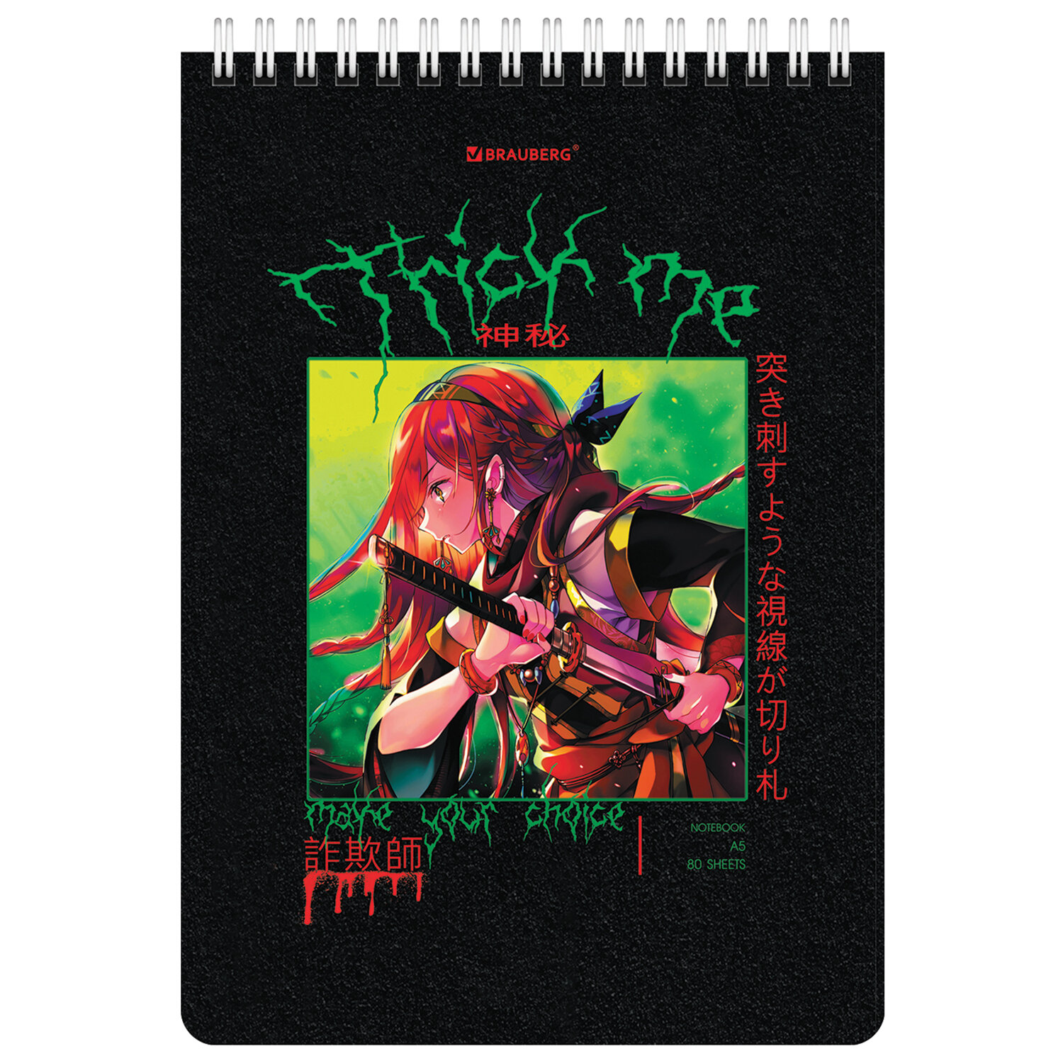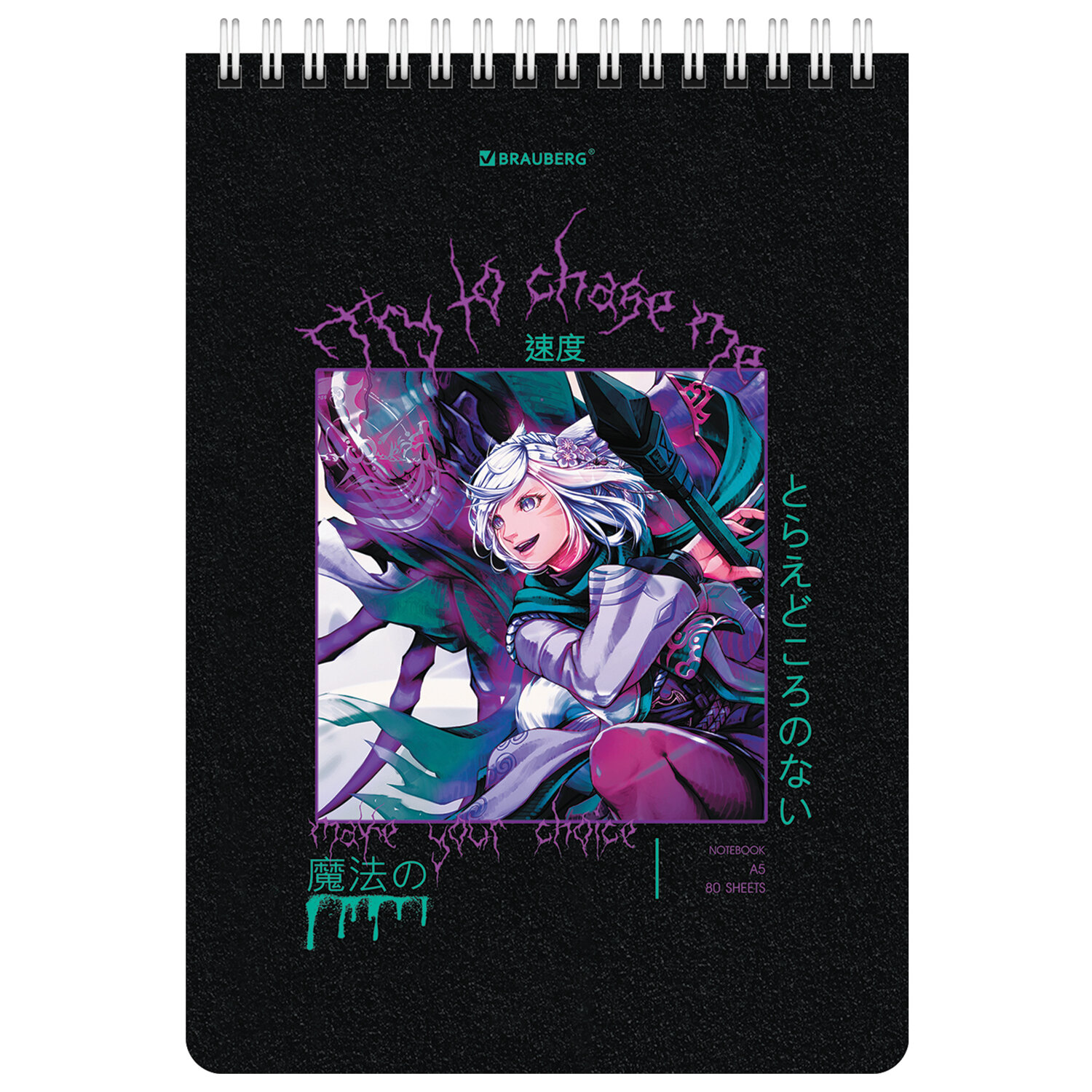 Блокнот А5 (146х206 мм), 80 л., гребень, картон, клетка, BRAUBERG, "Аниме", 114375