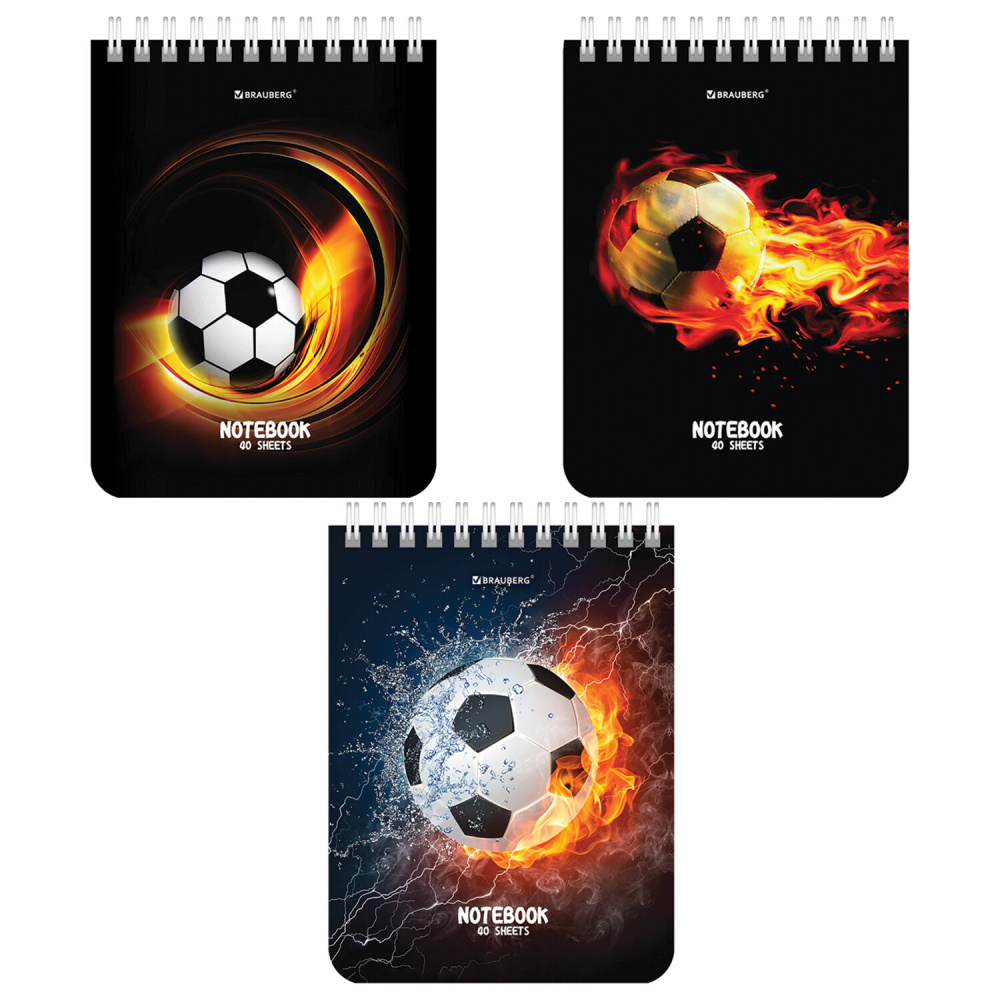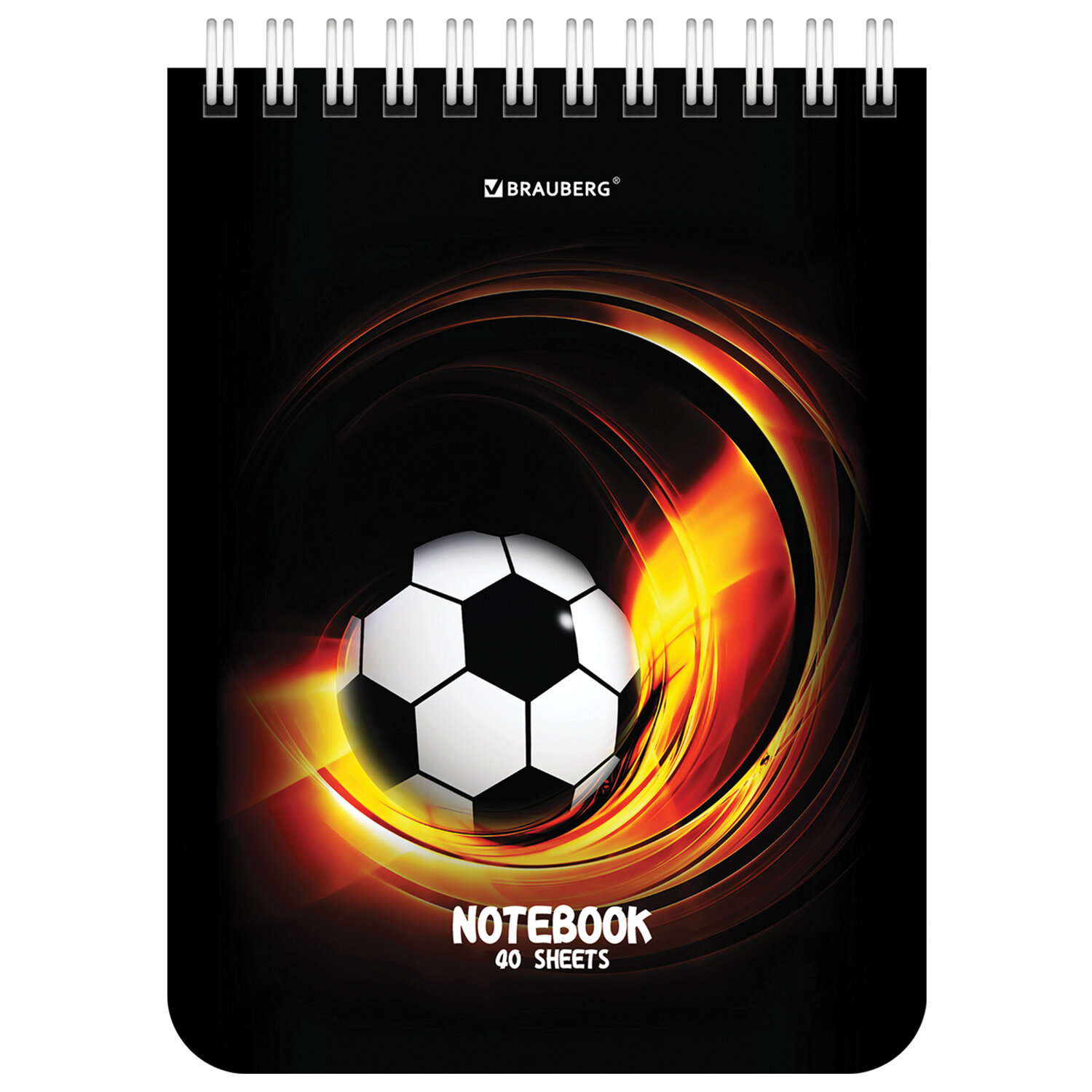 Блокнот МАЛЫЙ ФОРМАТ А6 108х145 мм, 40 л., гребень, картон, клетка, BRAUBERG, "Футбол", 114390