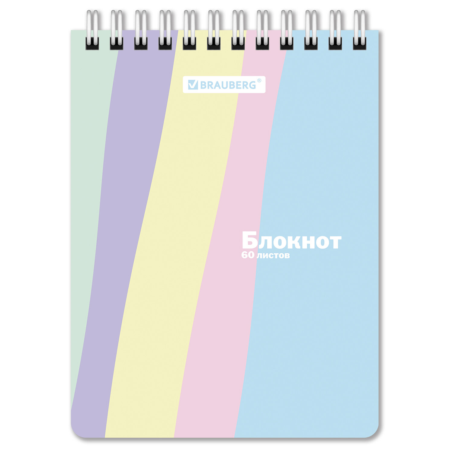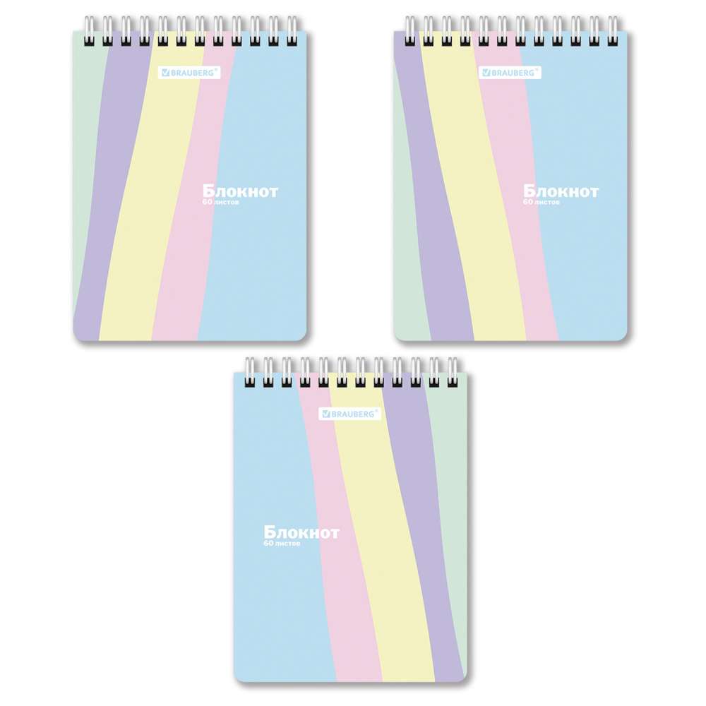 Блокнот МАЛЫЙ ФОРМАТ А6 108х145 мм, 60 л., гребень, картон, клетка, кросс-серия "PASTEL", BRAUBERG, 117033