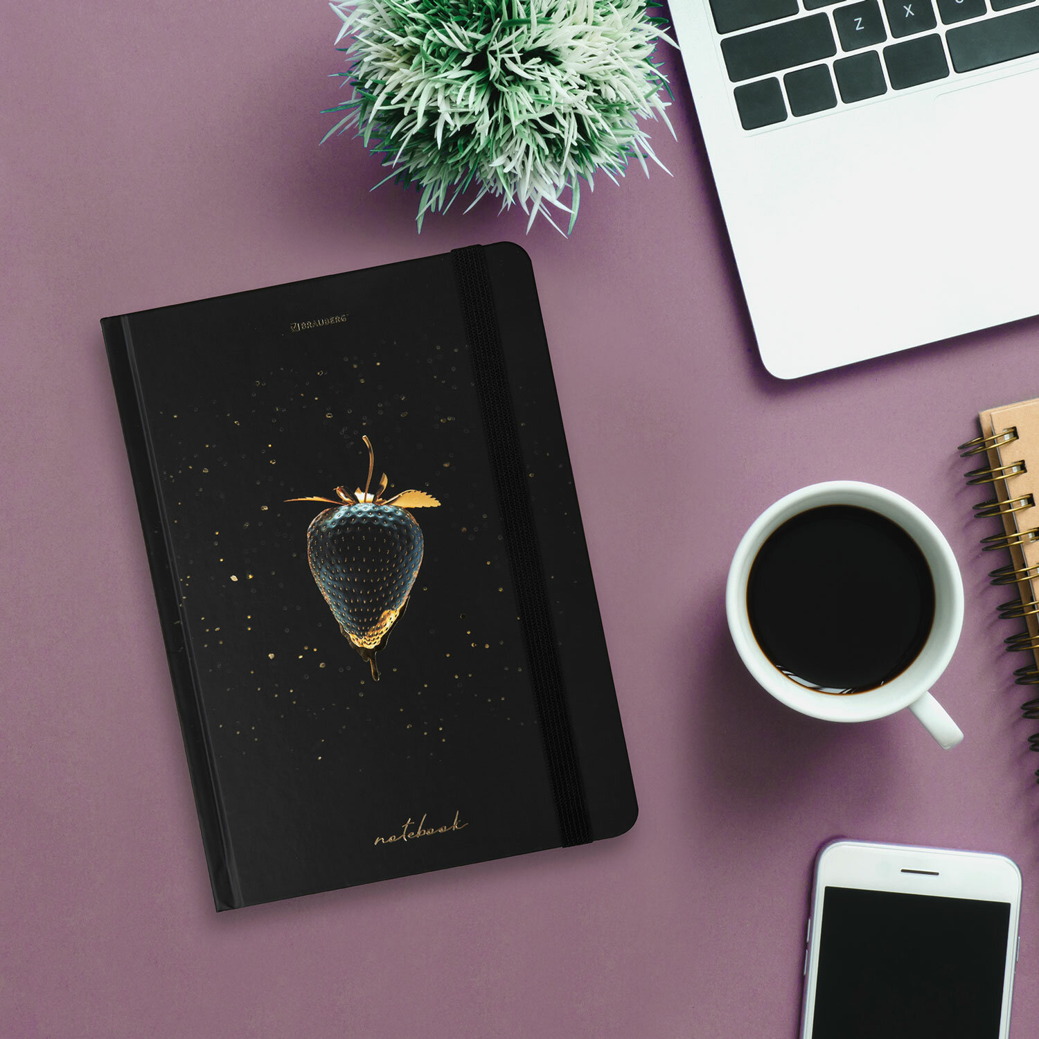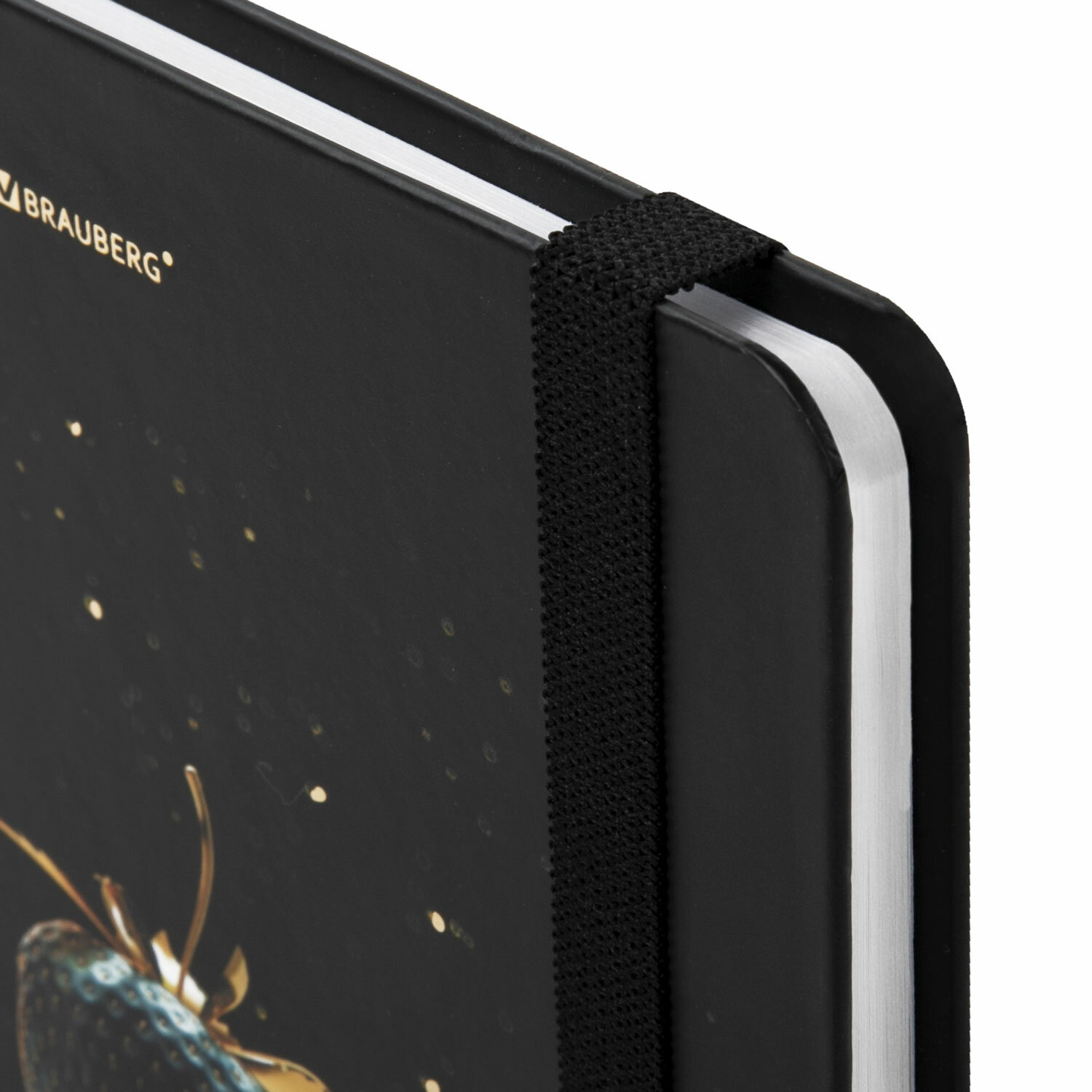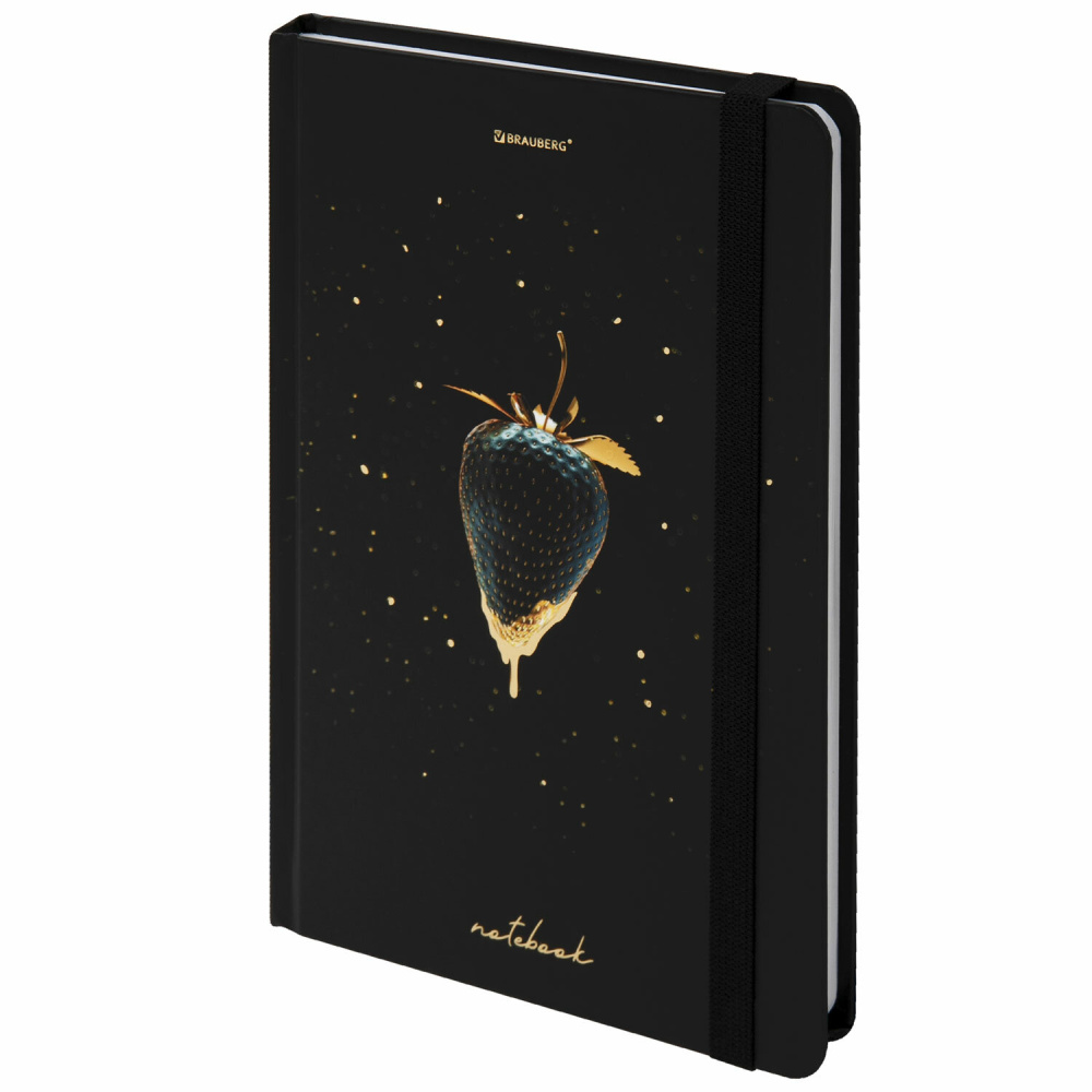 Блокнот с резинкой без линовки 96 л., А5 (145х203 мм), твердая обложка с фольгой, BRAUBERG, "Strawberry", 113735