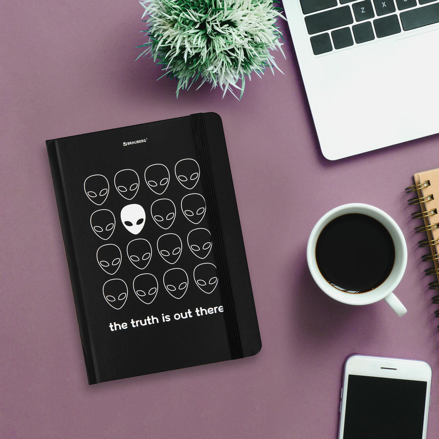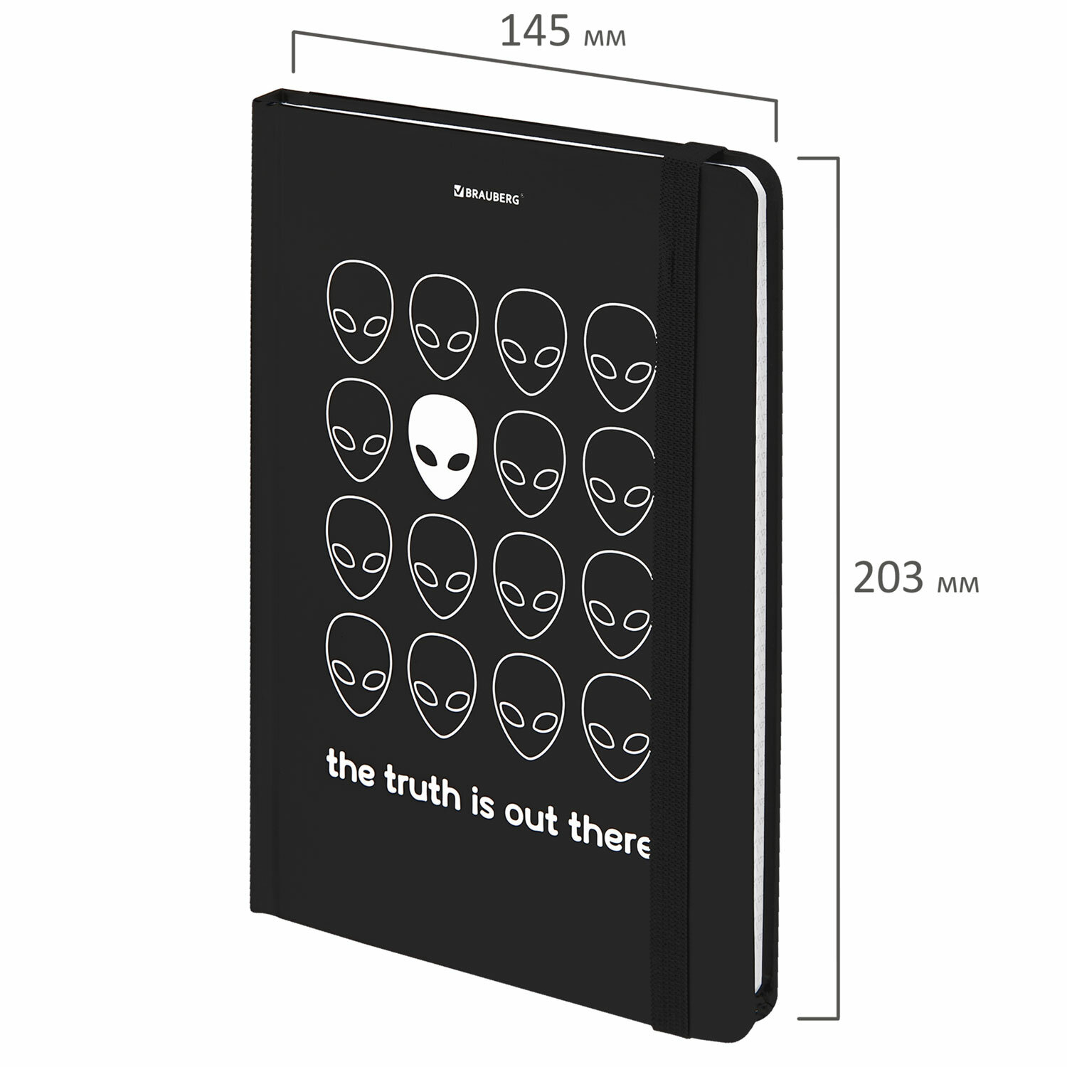 Блокнот с резинкой в клетку 96 л., А5 (145х203 мм), твердая обложка, BRAUBERG, "Aliens", 113722