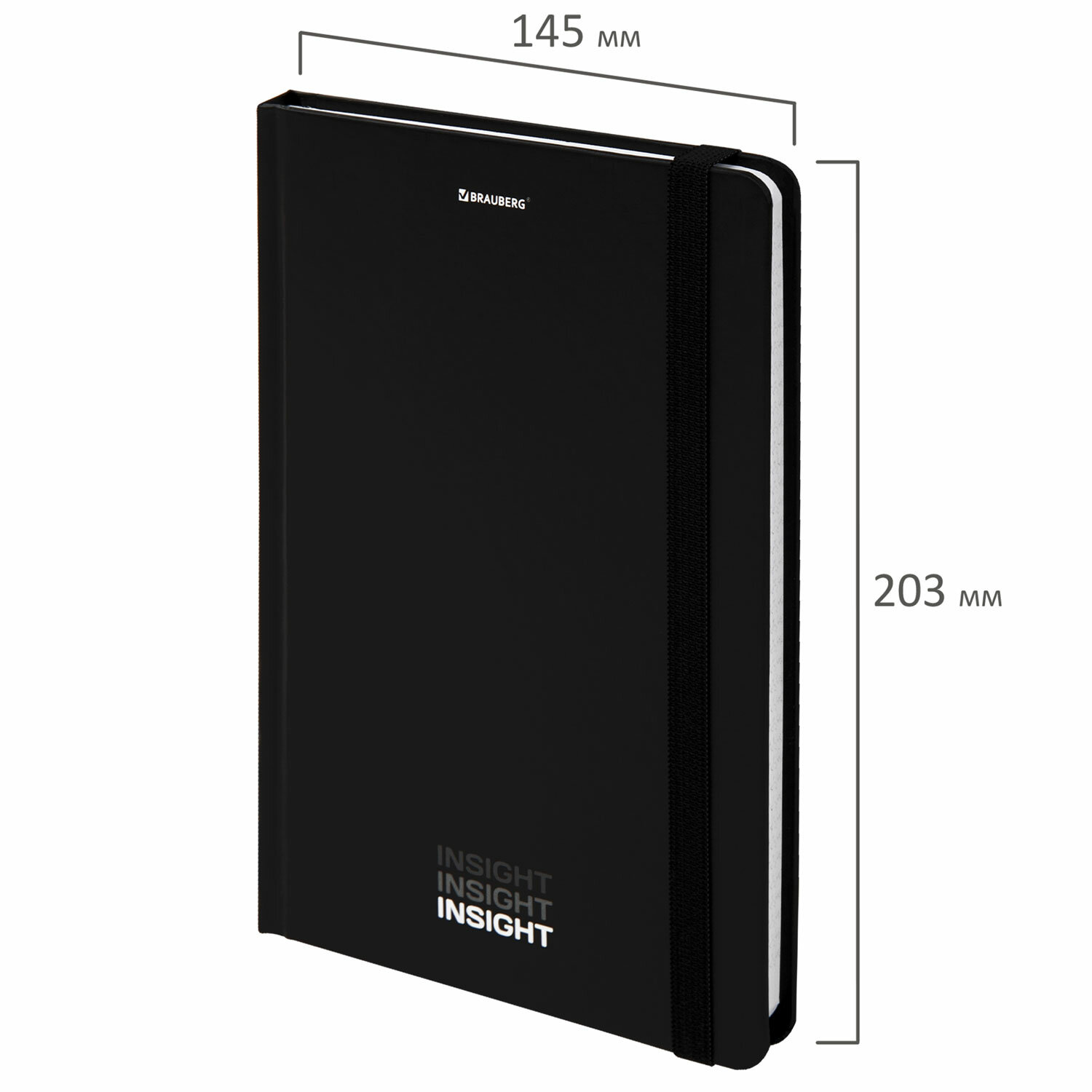 Блокнот с резинкой в клетку 96 л., А5 (145х203 мм), твердая обложка, BRAUBERG, "Insight", 113723