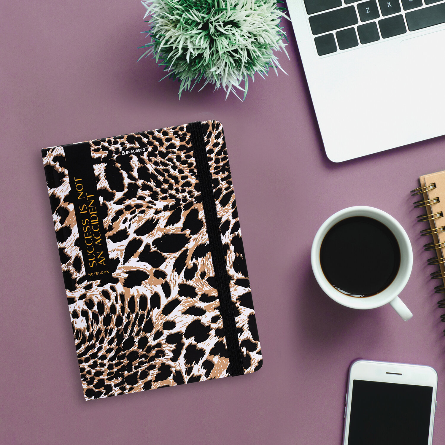 Блокнот с резинкой в клетку 96 л., А5, 145х203 мм, твердая обложка, BRAUBERG," Leopard", 115535