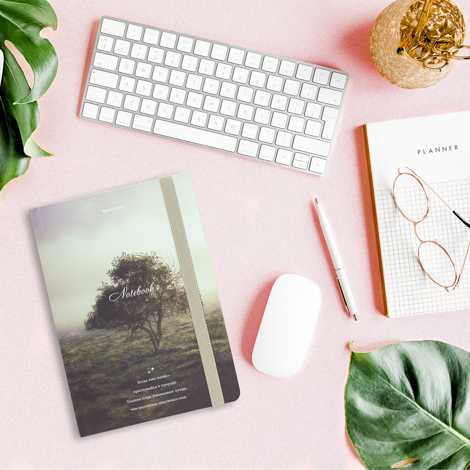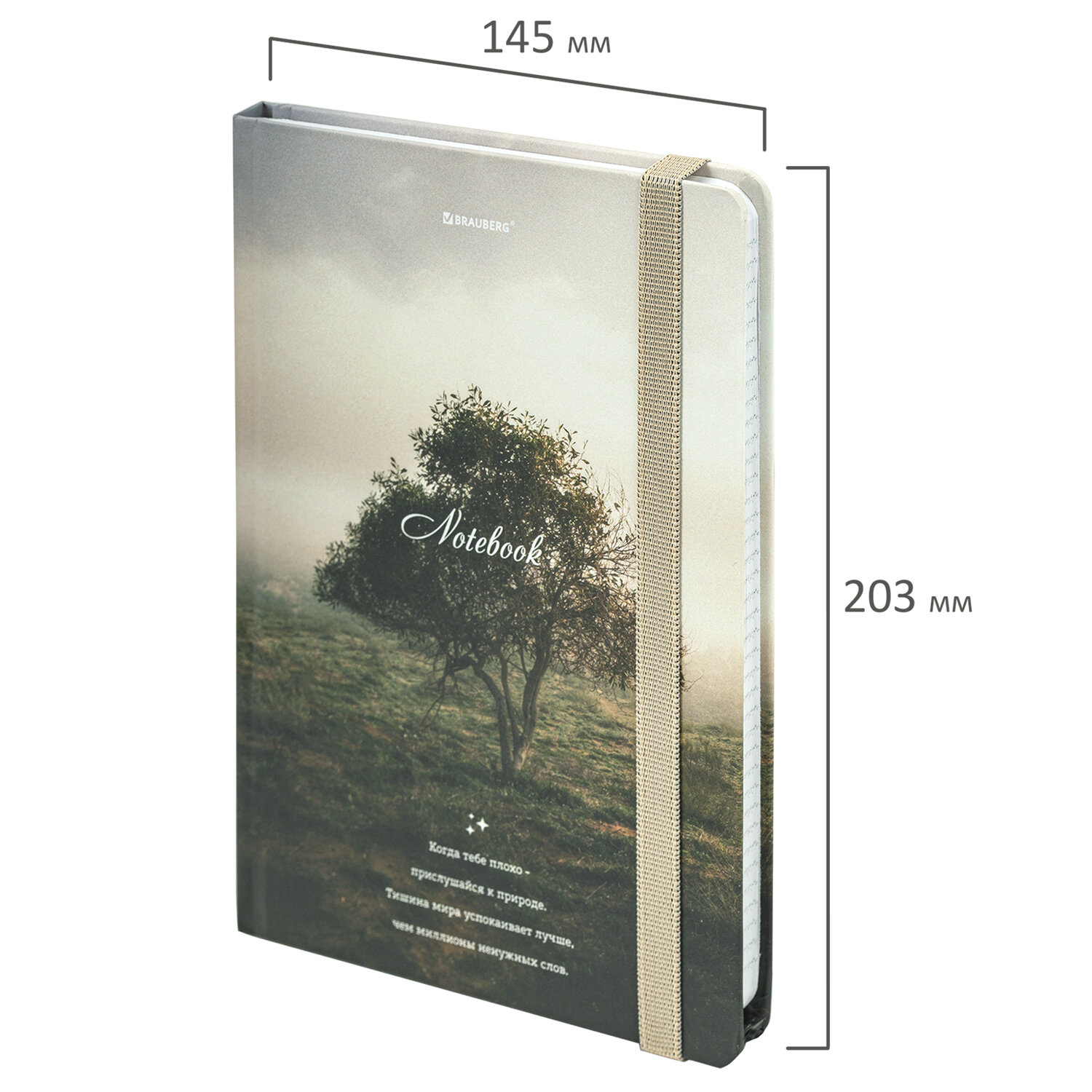 Блокнот с резинкой в клетку 96 л., А5, 145х203 мм, твердая обложка, BRAUBERG, "Nature", 115534