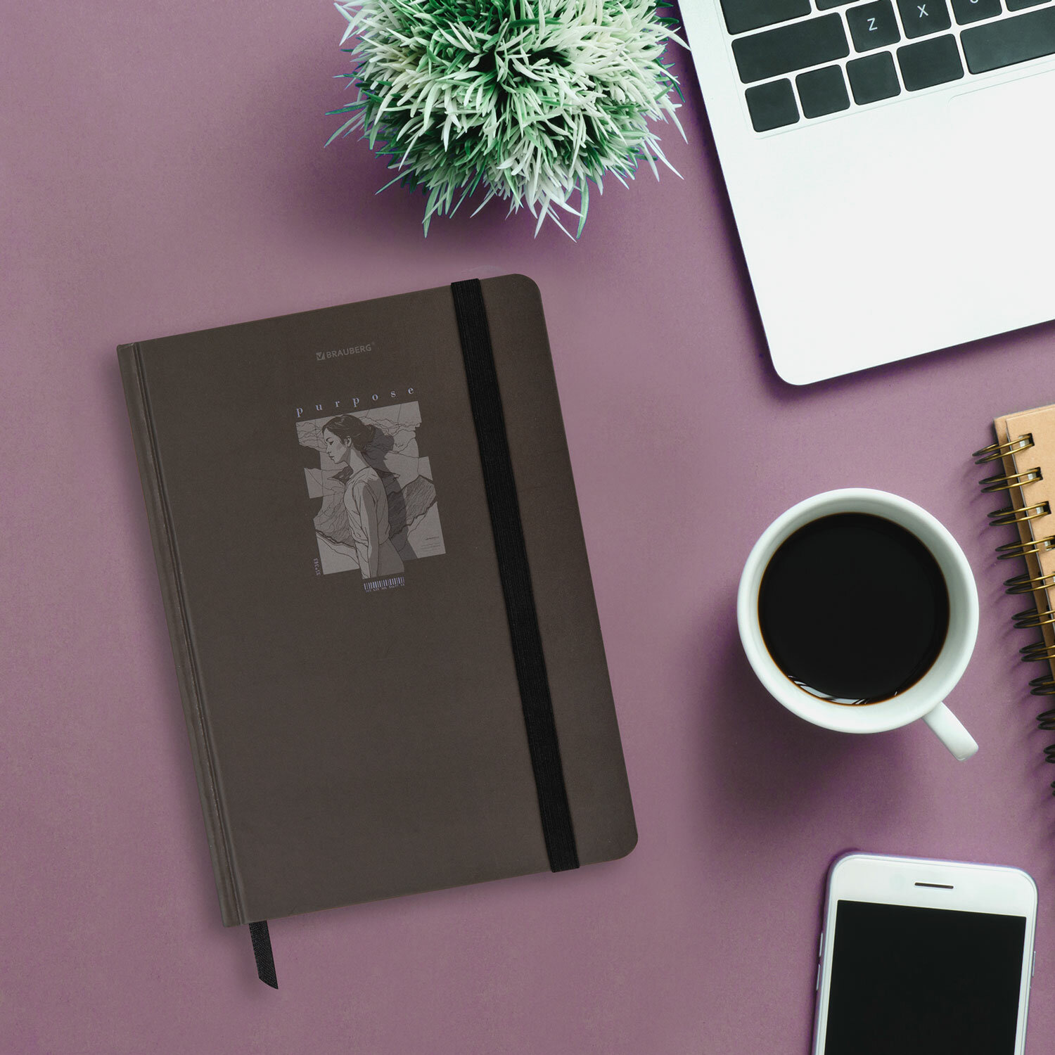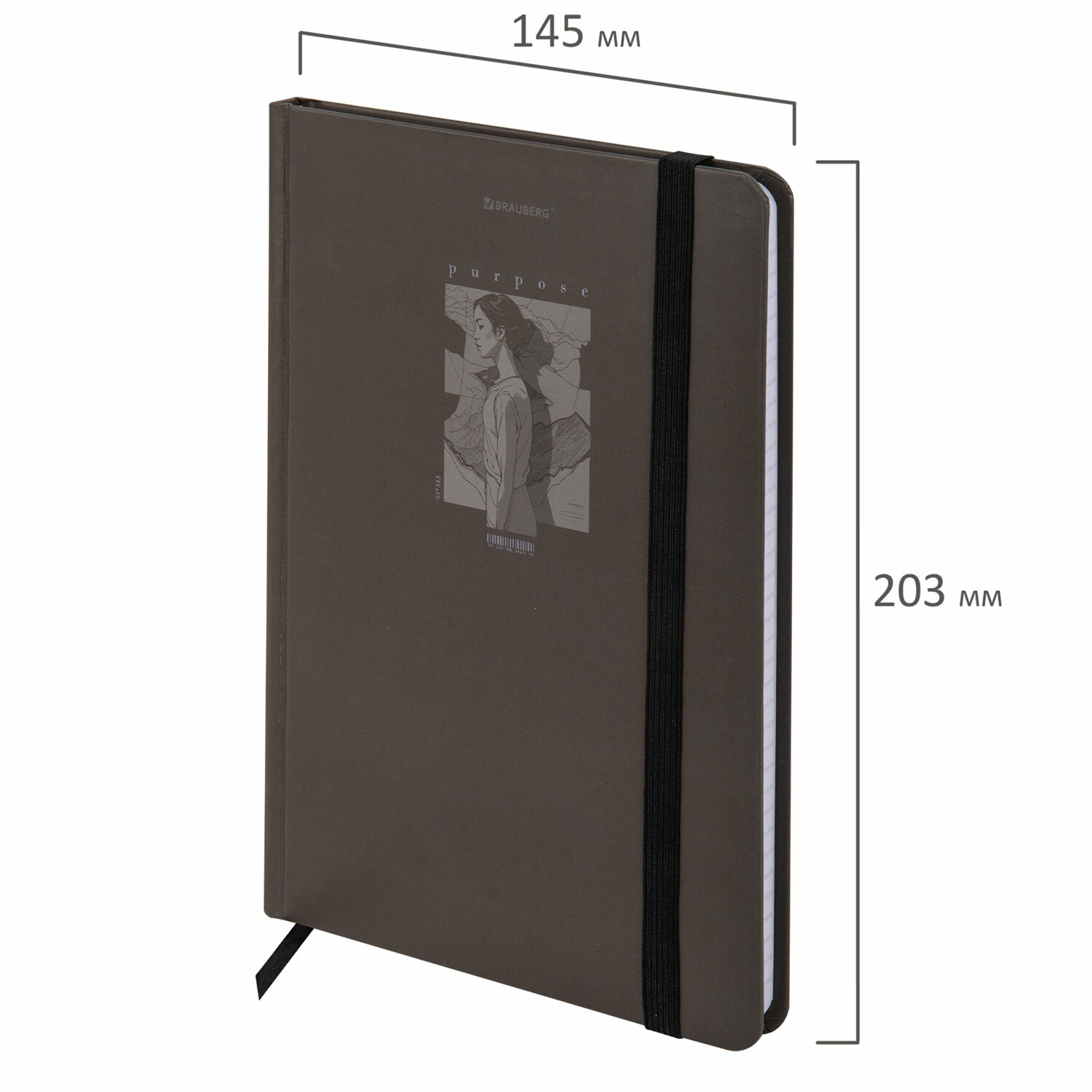 Блокнот с резинкой в клетку 96 л., А5 145х203 мм, твердая обложка, BRAUBERG, "Purpose", 116316