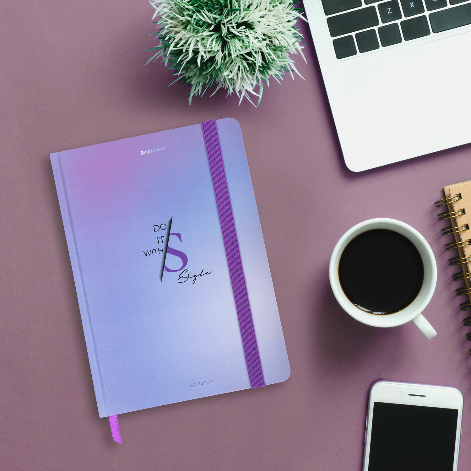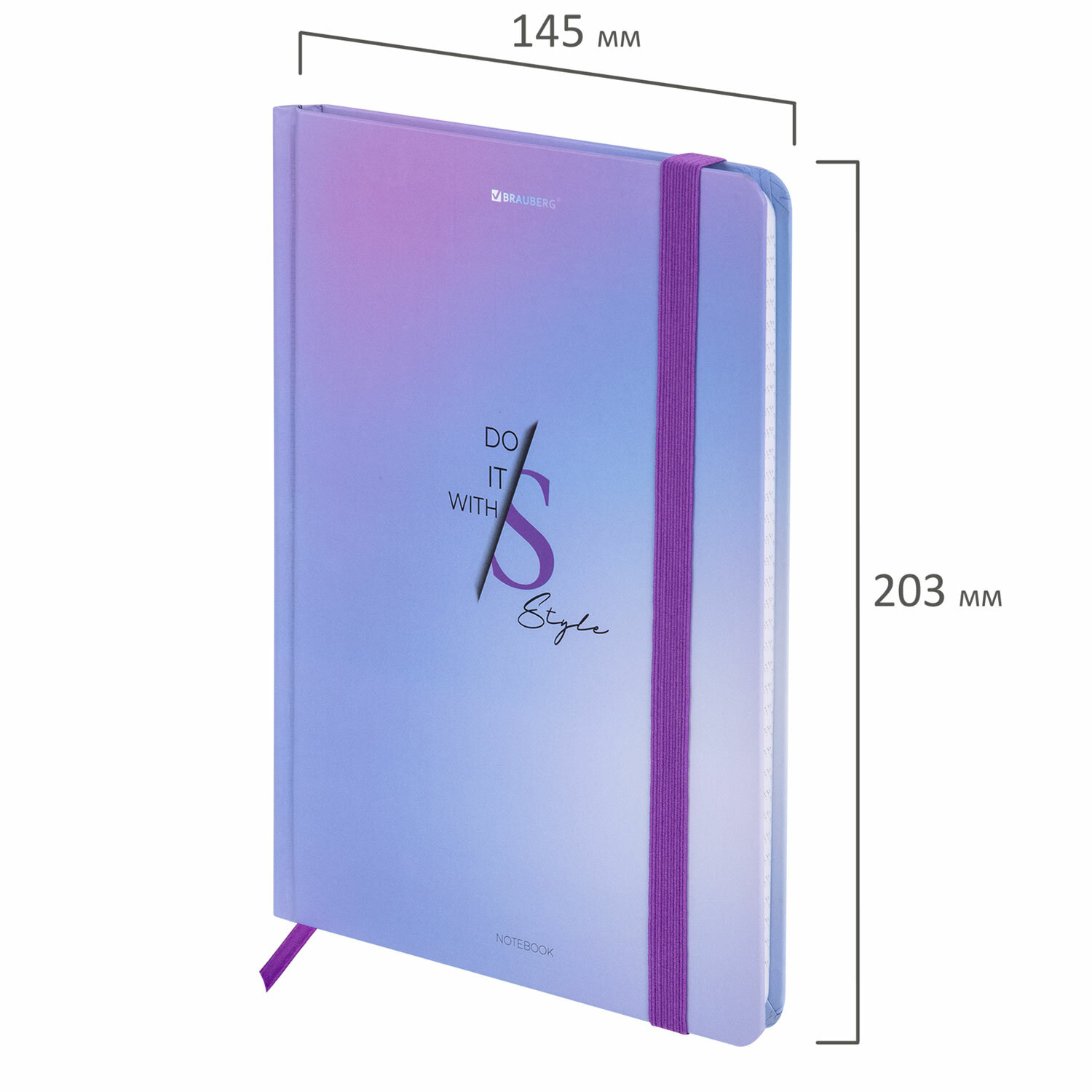 Блокнот с резинкой в клетку 96 л., А5 145х203 мм, твердая обложка, BRAUBERG, "Style", 116320