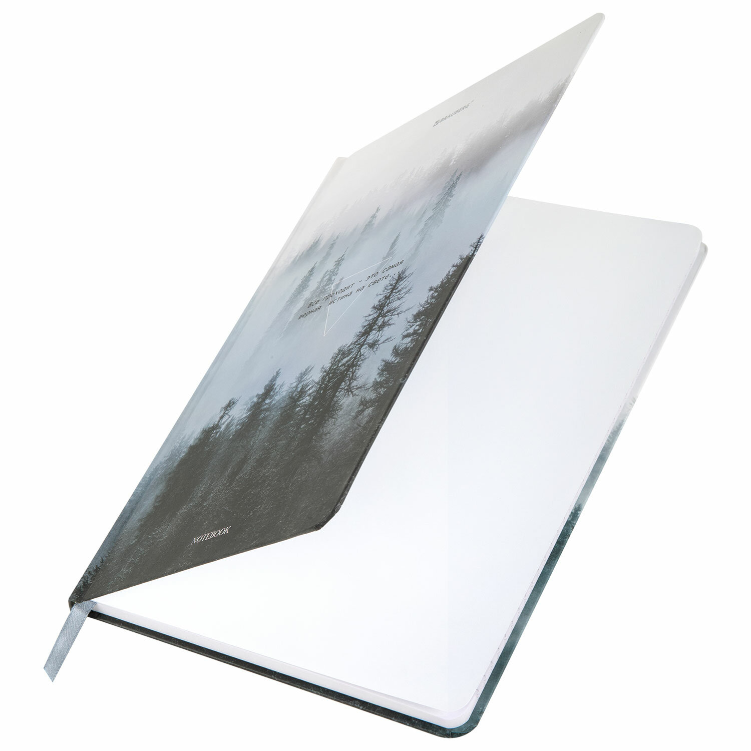 Внутренний блок изготовлен из белого офсета плотностью 60 г/м2 и прикреплён к обложке с помощью книжного переплёта. Формат блокнота А5 (145х203 мм) позволяет удобно разместить его в портфеле или небольшой сумке.