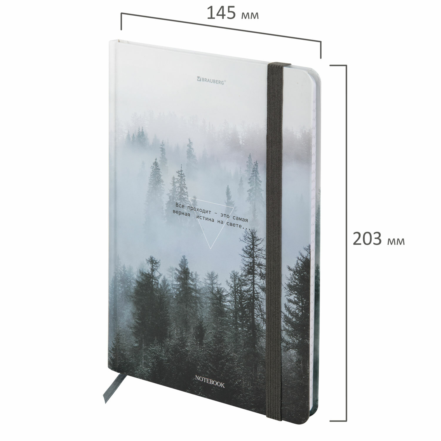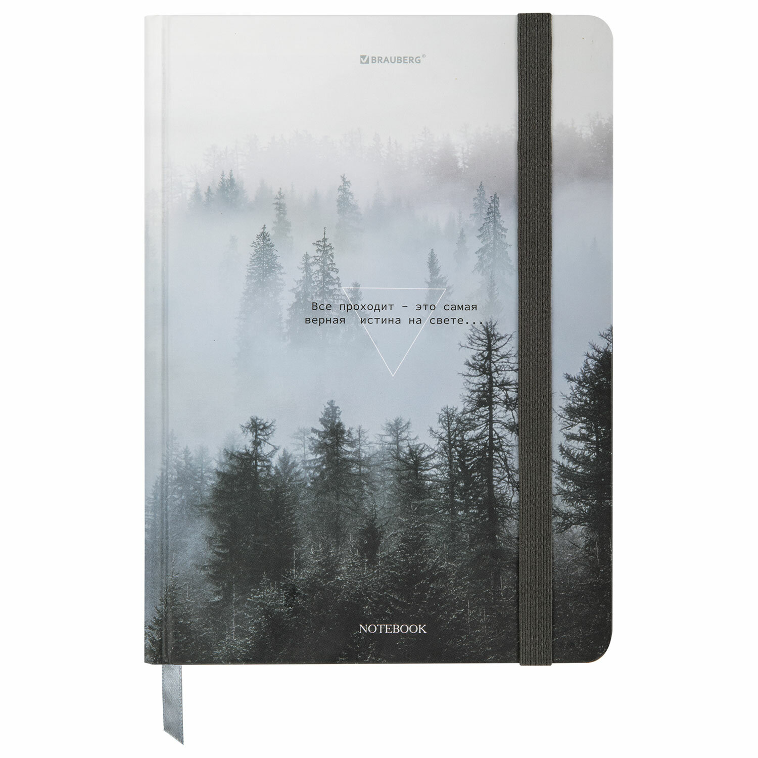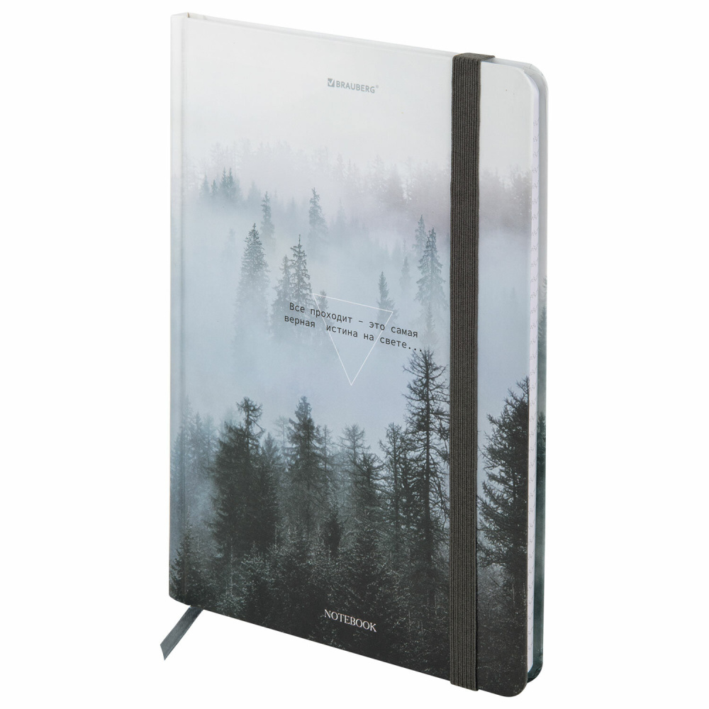 Блокнот с резинкой в клетку 96 л., А5 145х203 мм, твердая обложка, BRAUBERG, "Туман", 116315