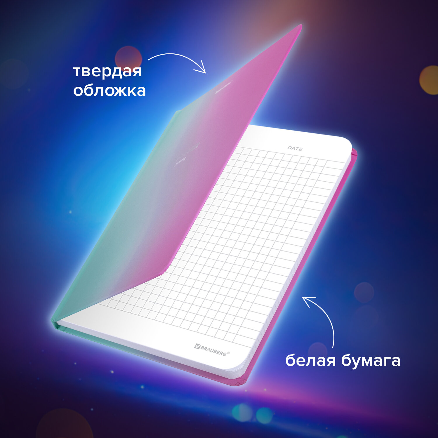 Блокнот с резинкой в клетку 96 л., А5 (145х203 мм), твердая обложка с фольгой, BRAUBERG, "Градиент", 113732