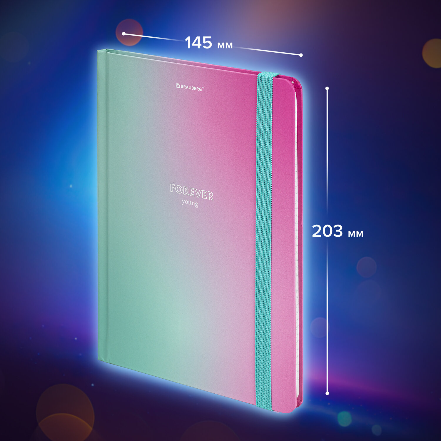 Яркий блокнот BRAUBERG для записей и заметок с практичной твердой обложкой с матовой ламинацией и тиснением фольгой. Резинка-фиксатор надёжно защищает листы от замятия.