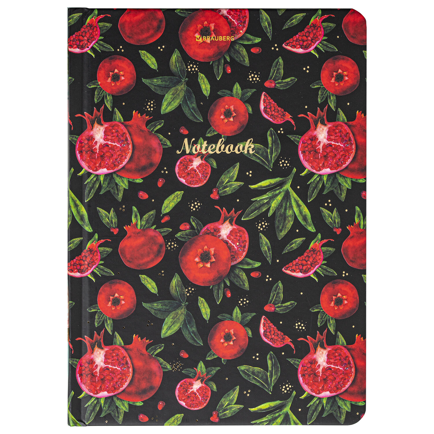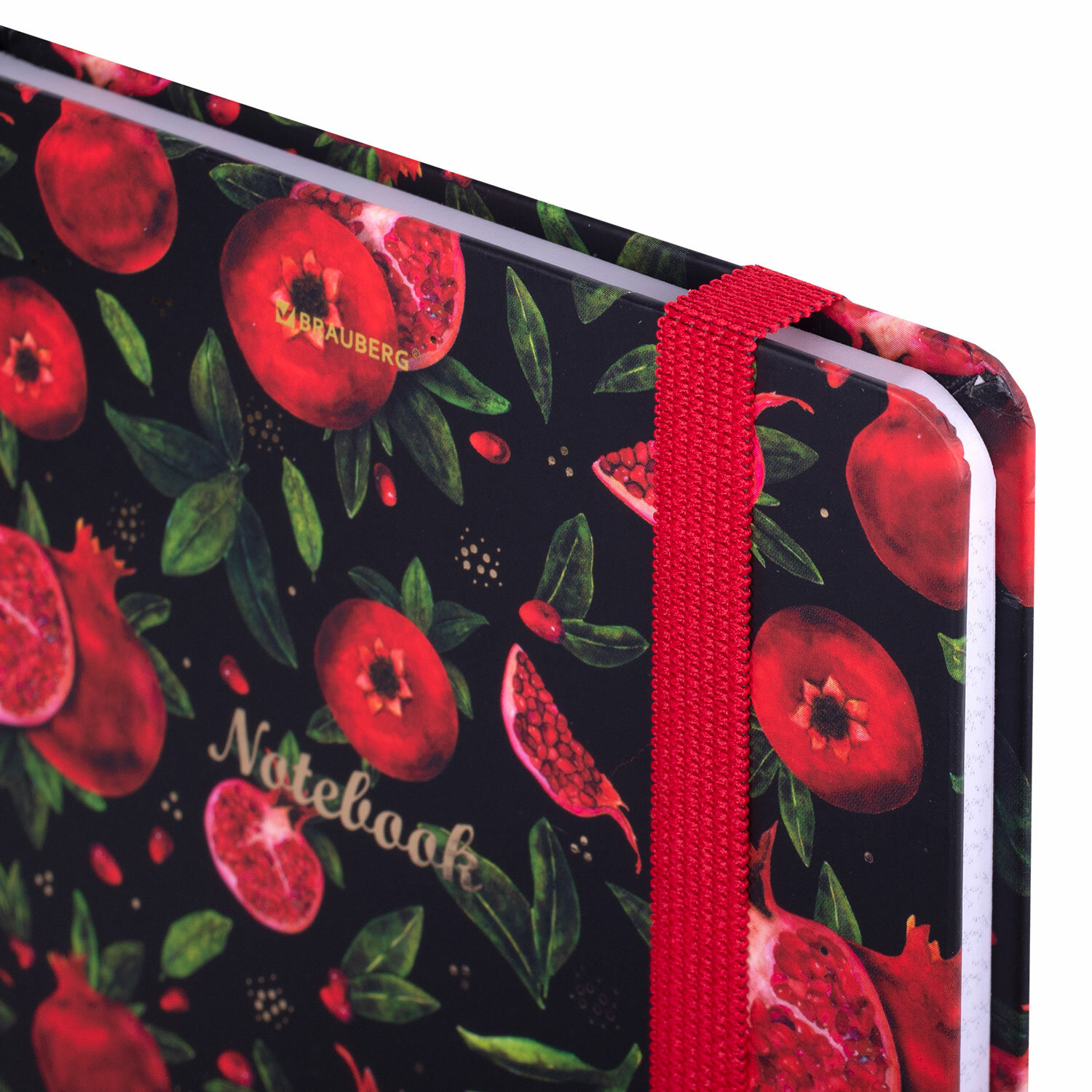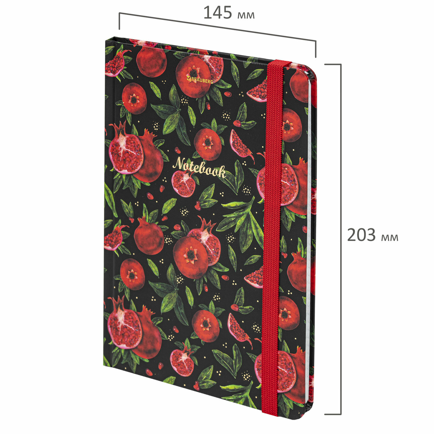 Блокнот с резинкой в клетку 96 л., А5 (145х203 мм), твердая обложка с фольгой, BRAUBERG, "Гранаты", 113730