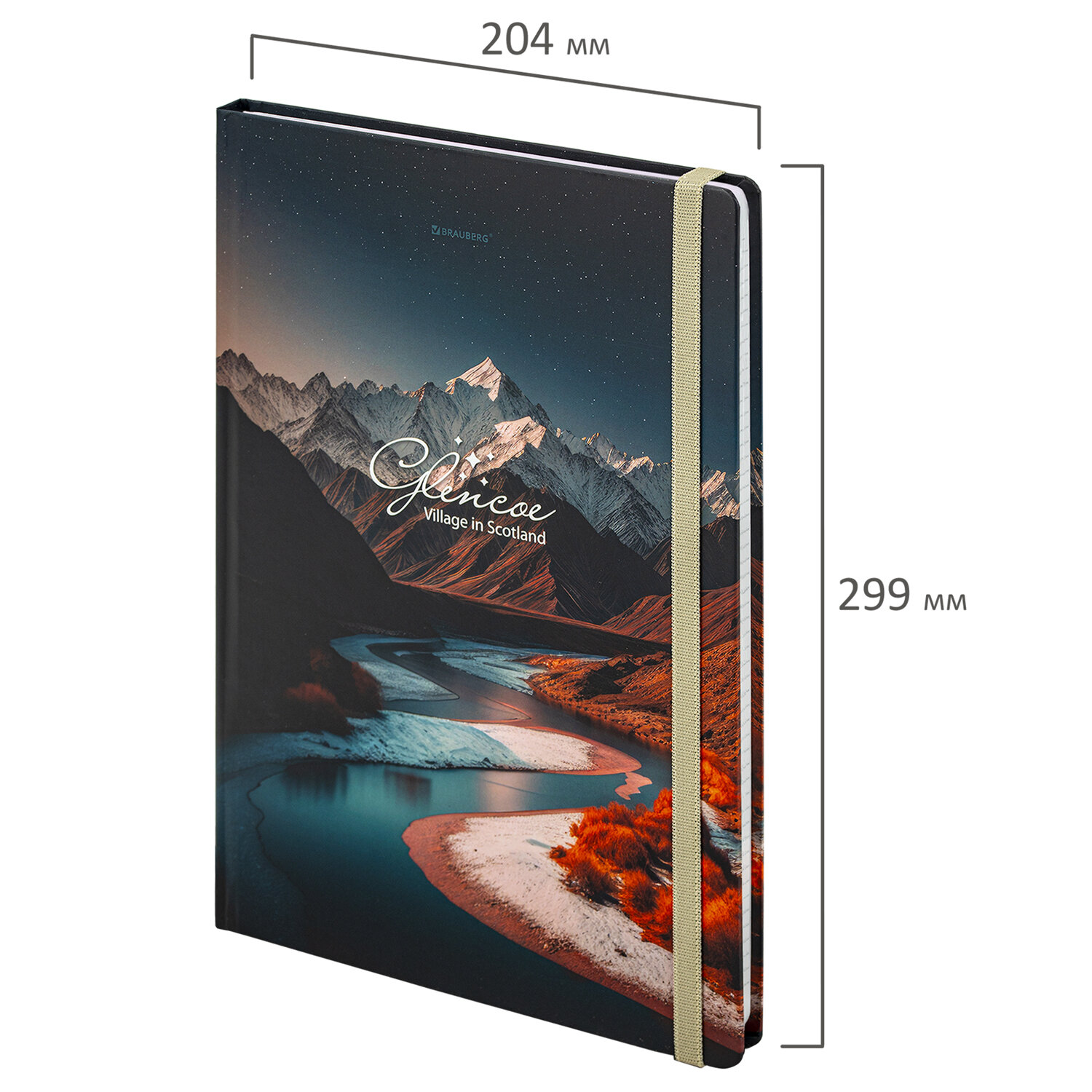 Блокнот с резинкой в клетку 96 л., БОЛЬШОЙ ФОРМАТ А4 204х299 мм, BRAUBERG, "Landscape", 115531