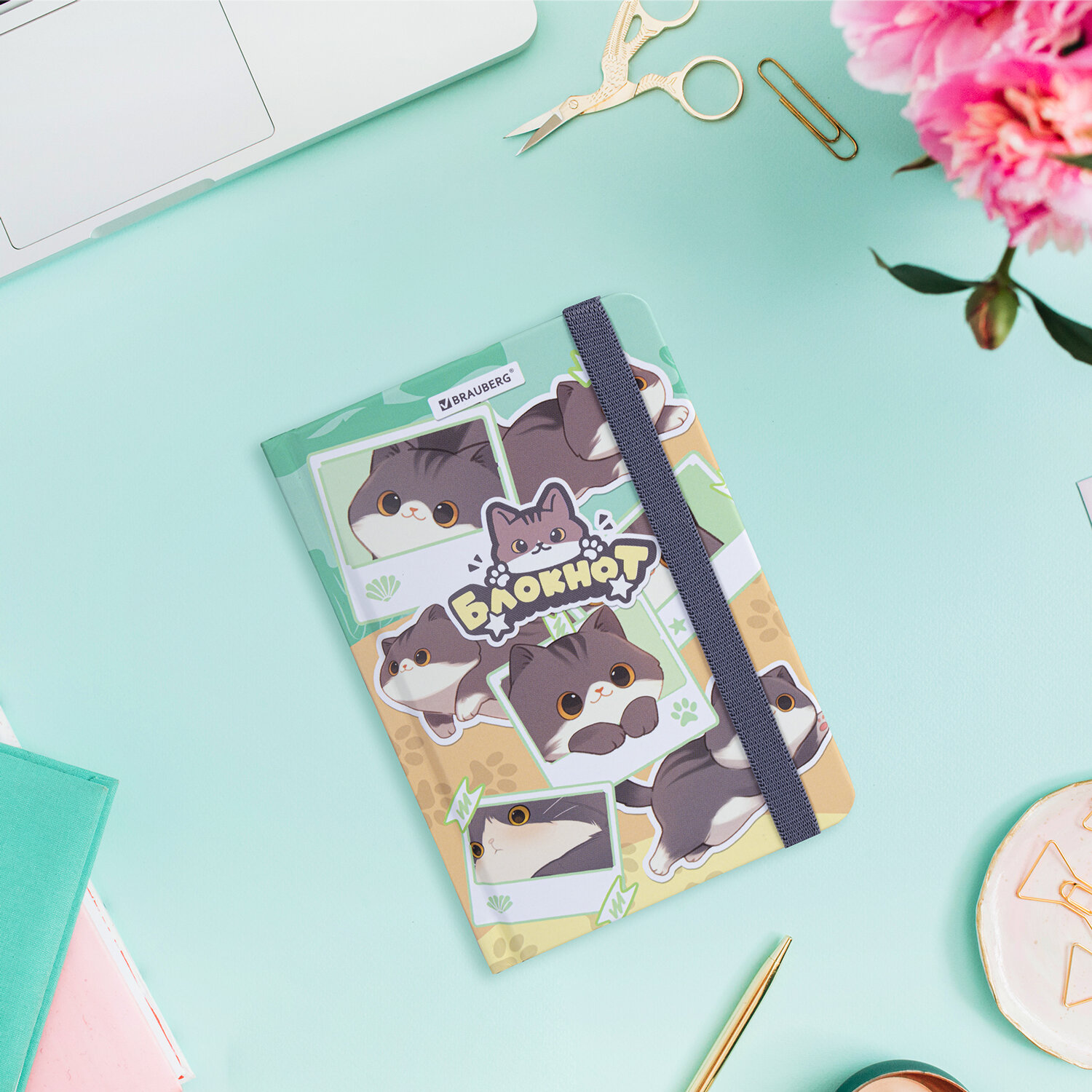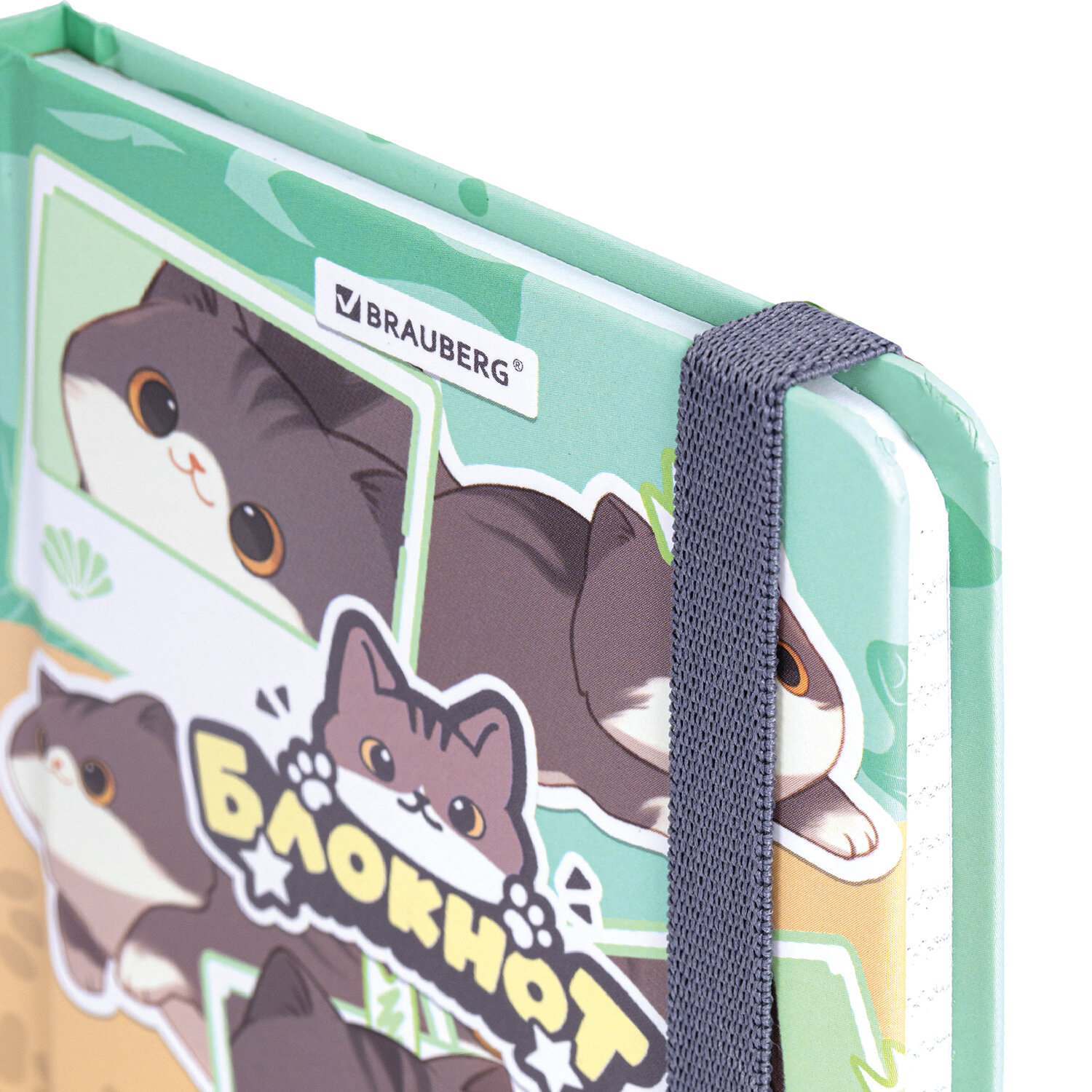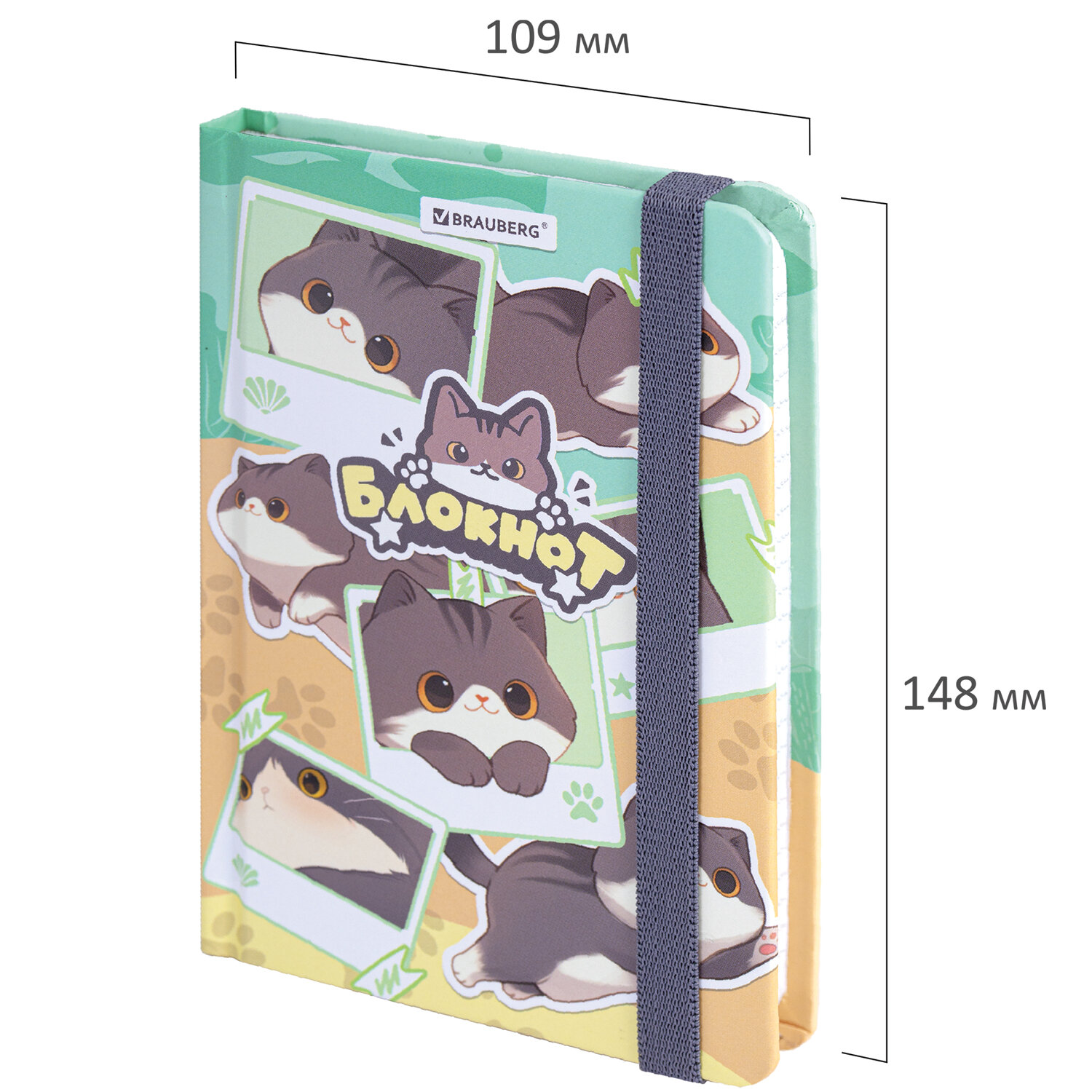 Блокнот с резинкой в клетку 96 л., МАЛЫЙ ФОРМАТ А6, 109х148 мм, BRAUBERG, кросс-серия "МИЛЫЕ КОТЫ", 116991