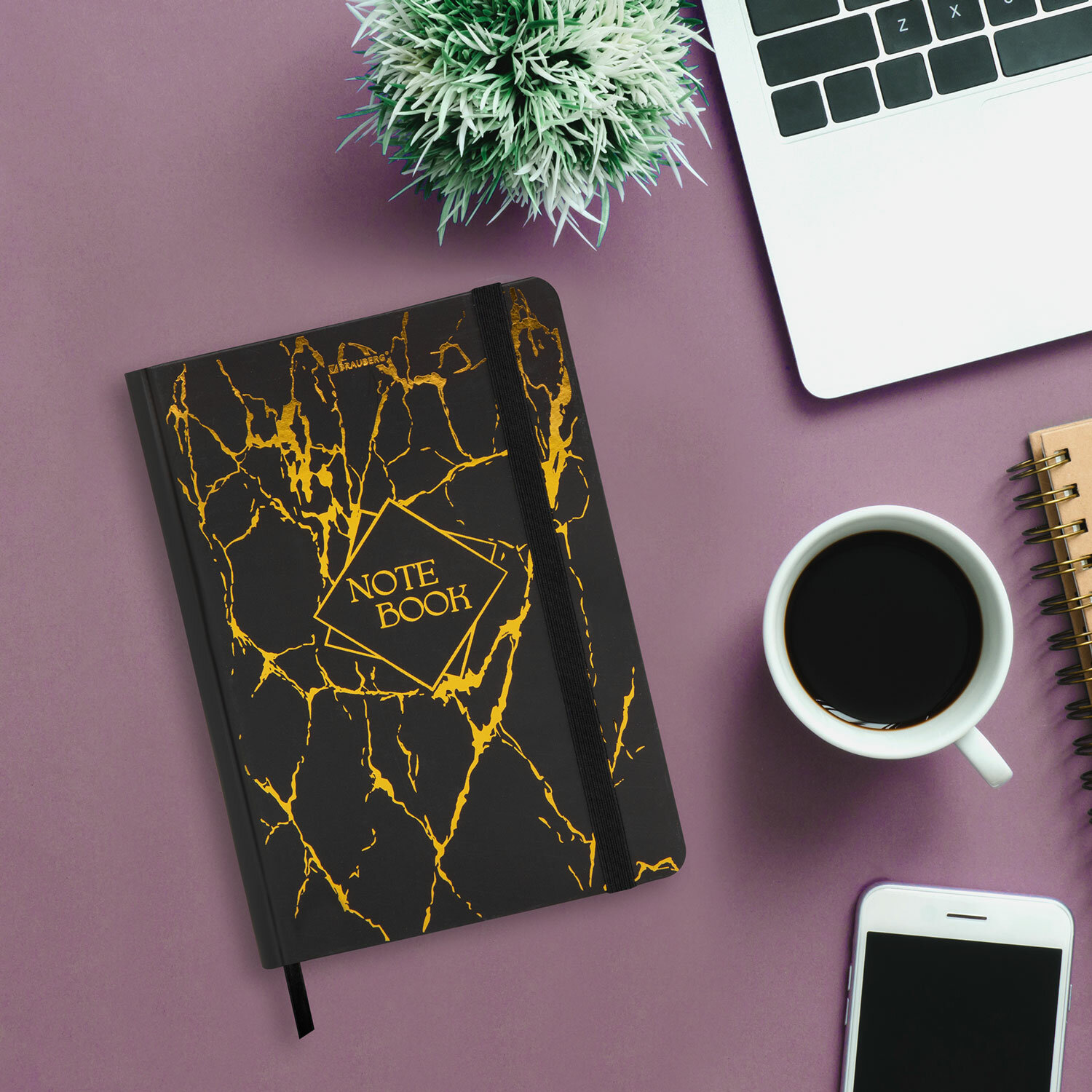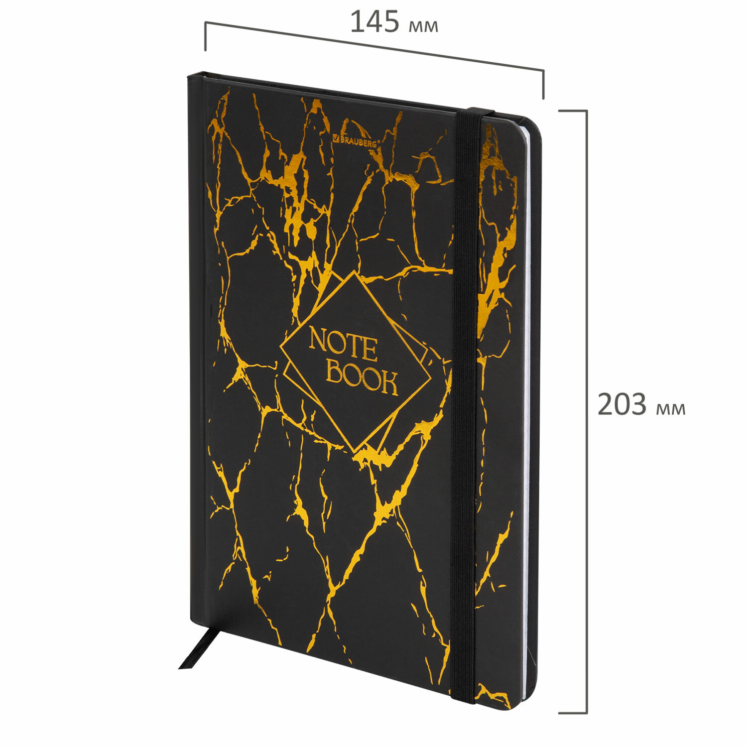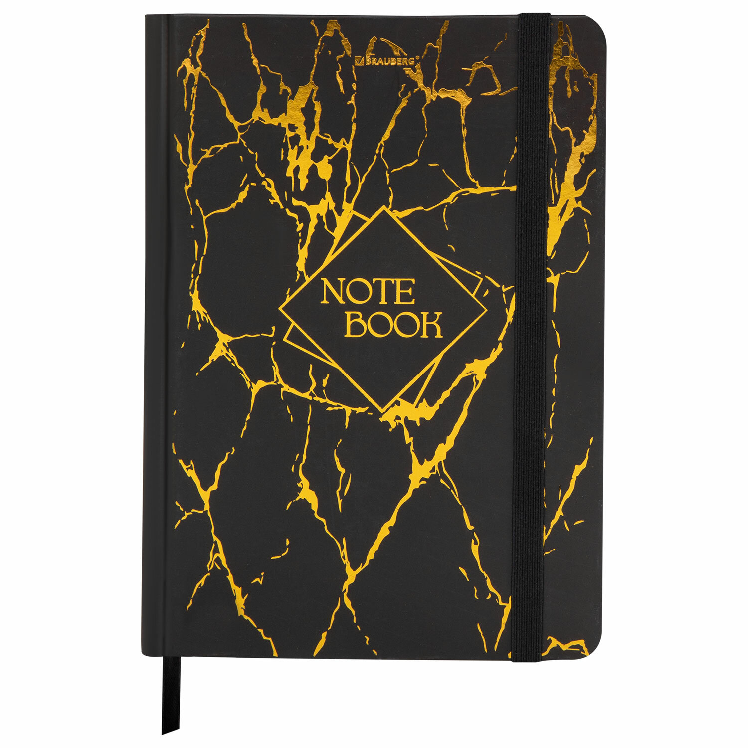 Блокнот с резинкой в клетку 96 л., А5 145х203 мм, твердая обложка с фольгой, BRAUBERG, "Marble", 116328
