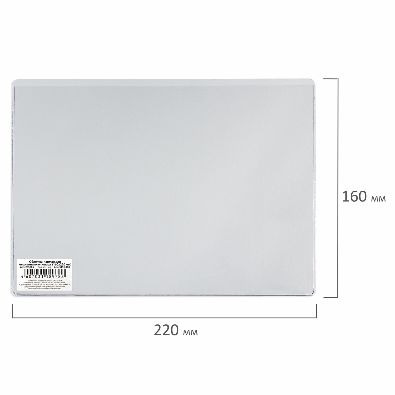 Обложка-карман для медицинского полиса, 220х160 мм, ПВХ 300 мкм, прозрачная, ДПС, 3151.300