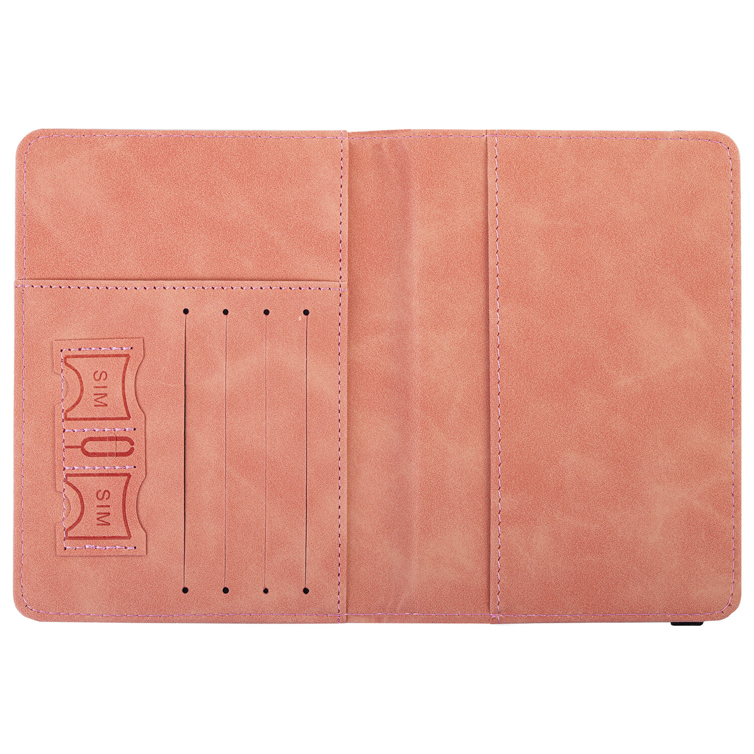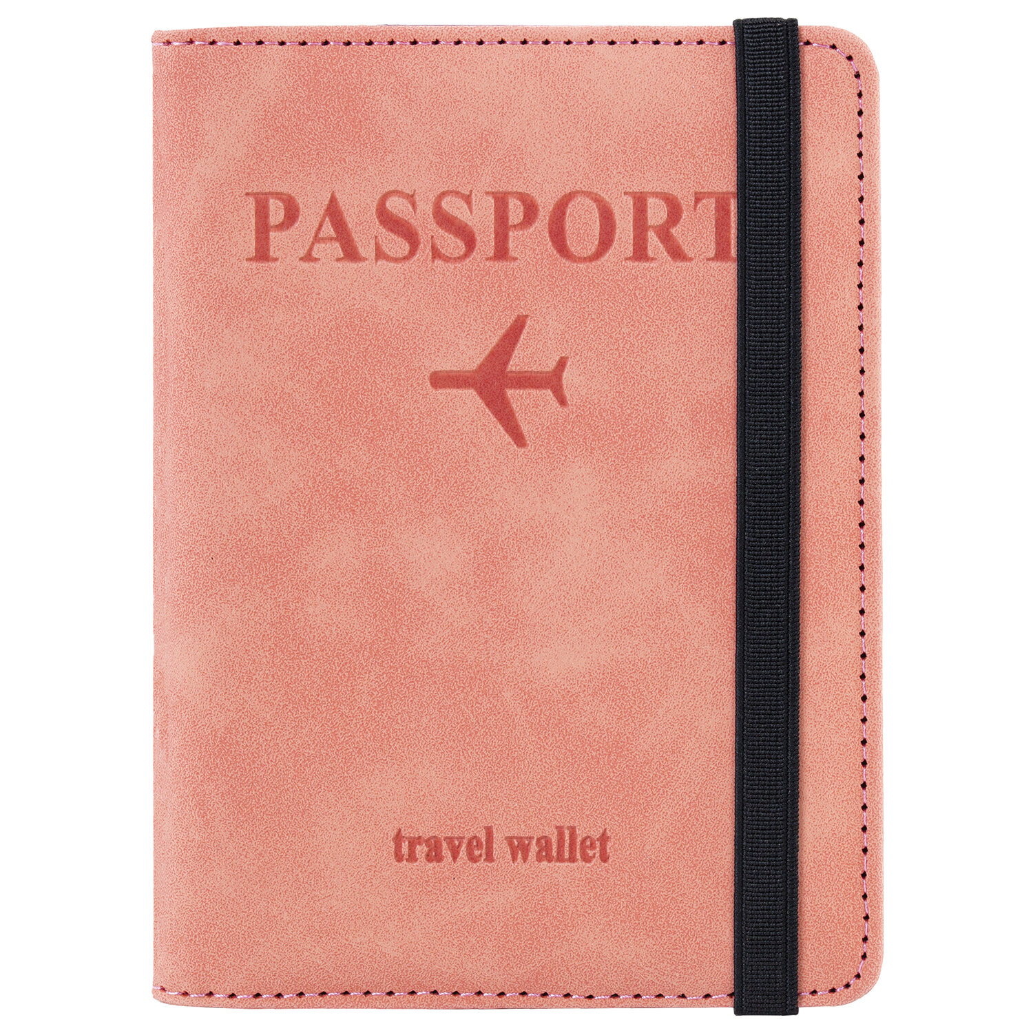 Модель выполнена из экокожи розового цвета c приятной на ощупь soft touch-поверхностью и украшена тиснением в виде надписи "Passport", "travel wallet" и силуэта самолета.