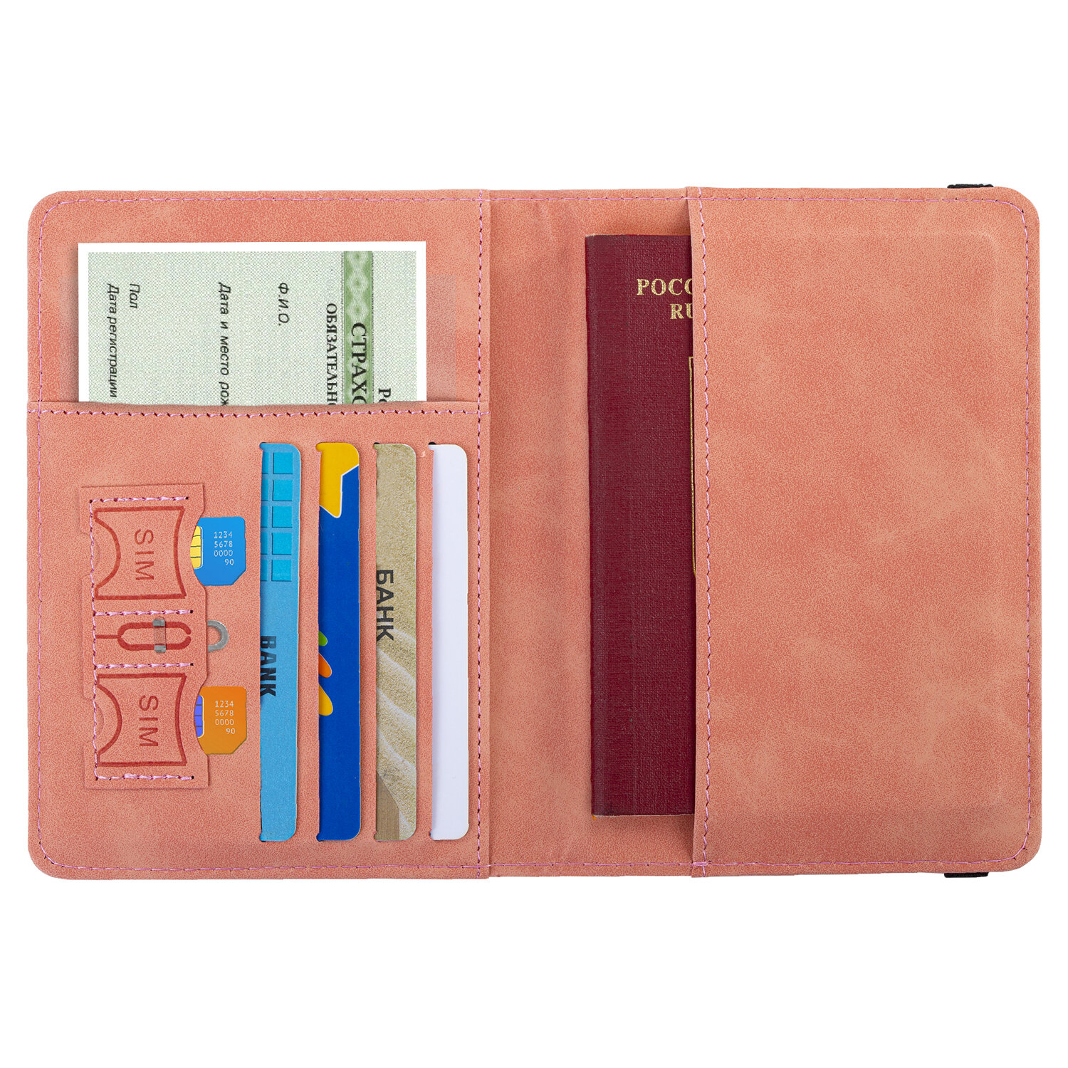 1) Основной карман для паспорта - подходит как для российского, так и для заграничного;
