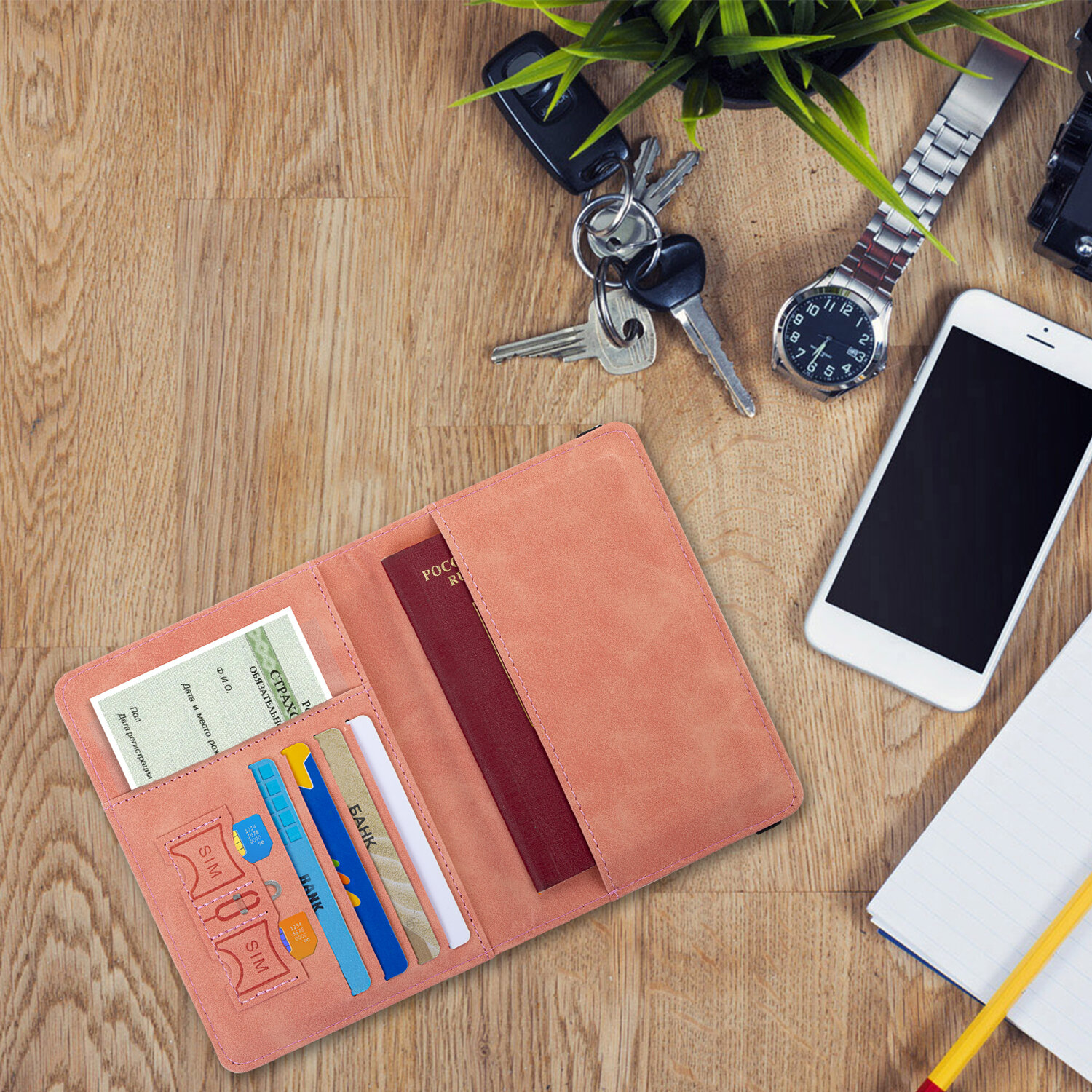 Этот многофункциональный аксессуар удобен в путешествиях и повседневной жизни, позволяя хранить все важные документы в одном месте.