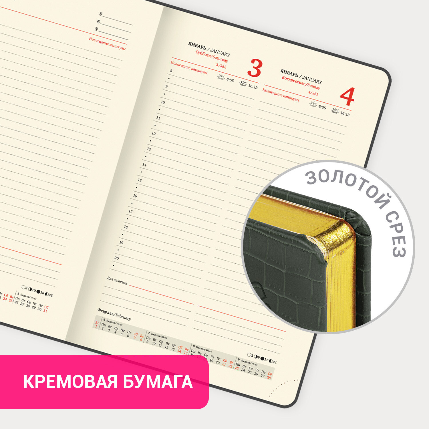 Датированный ежедневник BRAUBERG "Comodo" с обложкой, стилизованной под крокодиловую кожу, отличается изысканным внешним видом.