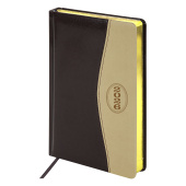 Внутренний блок включает 168 листов белой бумаги плотностью 70 г/м2. Каждая страничка имеет перфорированный угол. Благодаря стандартному формату А5 (138х213 мм) ежедневник удобно использовать как в офисе, так и на выездных деловых встречах. Твердая обложка стилизована под гладкую кожу. Подходит для горячего тиснения. Срез ежедневника украшен золотым фольгированием – это подчеркивает премиальность изделия.