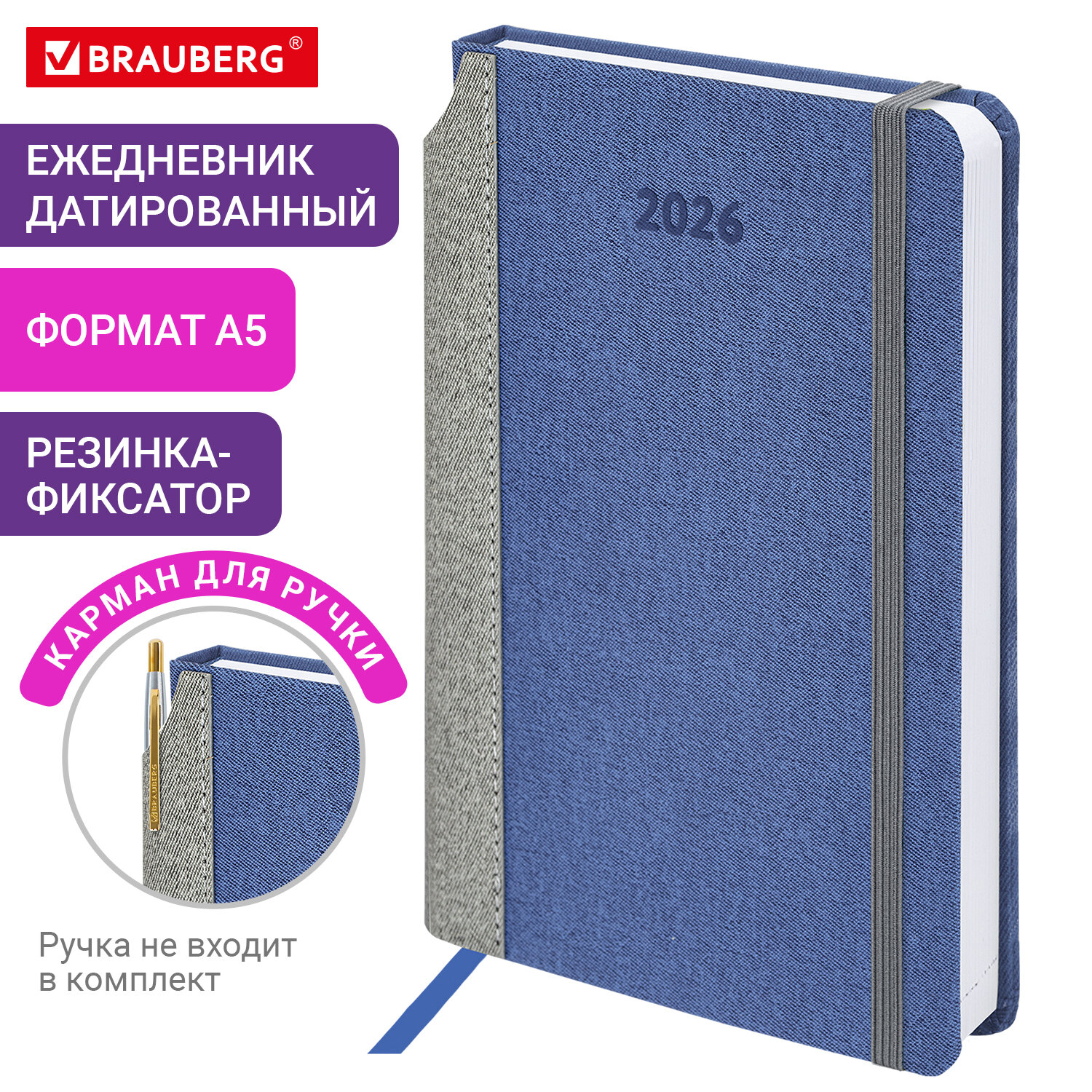 Ежедневник датированный 2026 А5 138x213 мм, BRAUBERG "Mosaic", под кожу, карман для ручки, синий, 117112