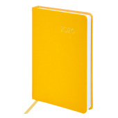 Жесткая книжная обложка желтого цвета с легкой рельефной фактурой напоминает натуральную кожу. Материал обложки – балакрон, подходит для тиснения только фольгой. Дополнением является закладка-ляссе, с помощью которой при необходимости можно быстро открыть ежедневник на нужной странице. Обширный справочный материал дополнительно расширяет функциональность ежедневника. В конце внутреннего блока есть 4 страницы для записей и заметок.
