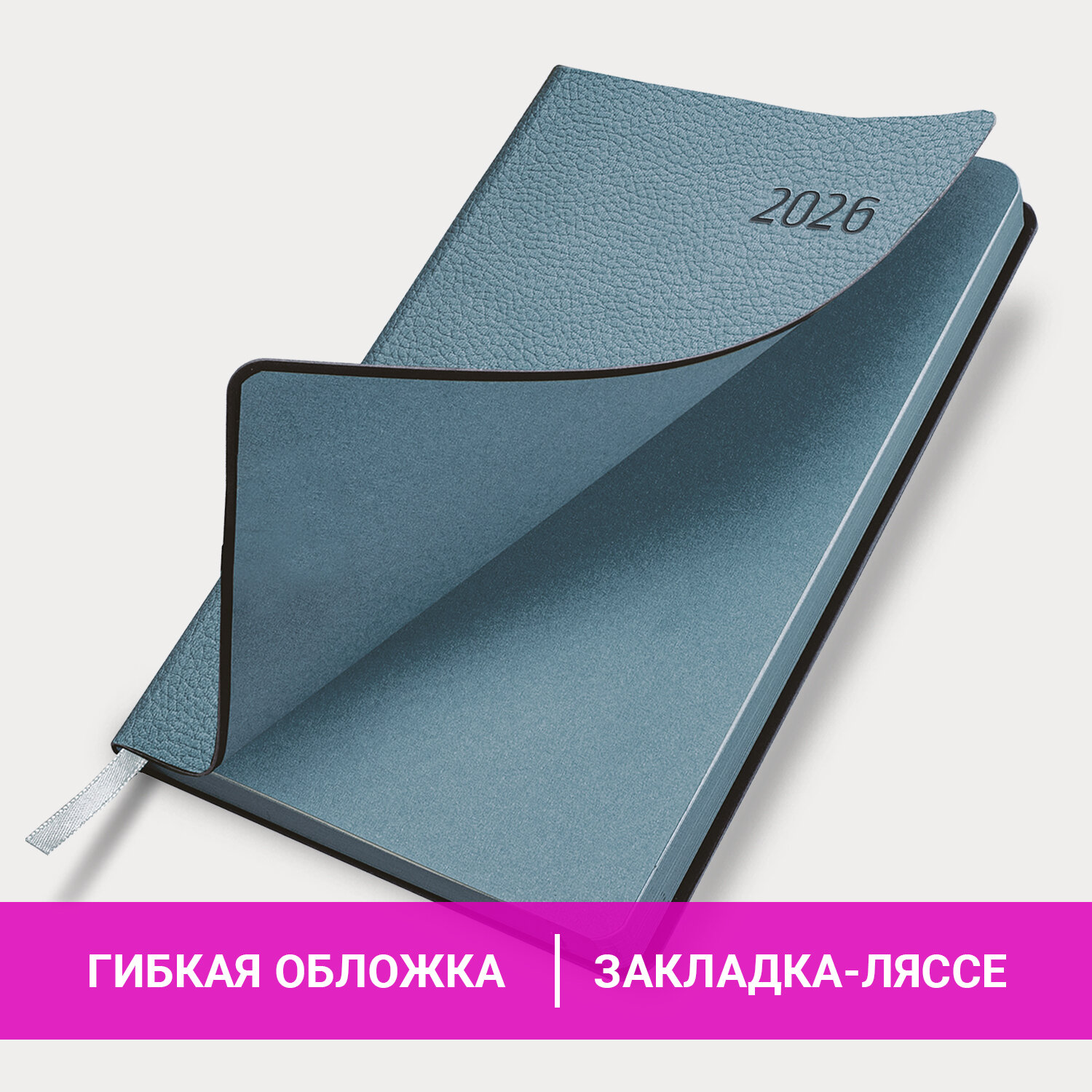 Ежедневник датированный 2026 А5 138x213 мм, BRAUBERG "Stylish", под кожу, гибкий, серо-голубой, 117105