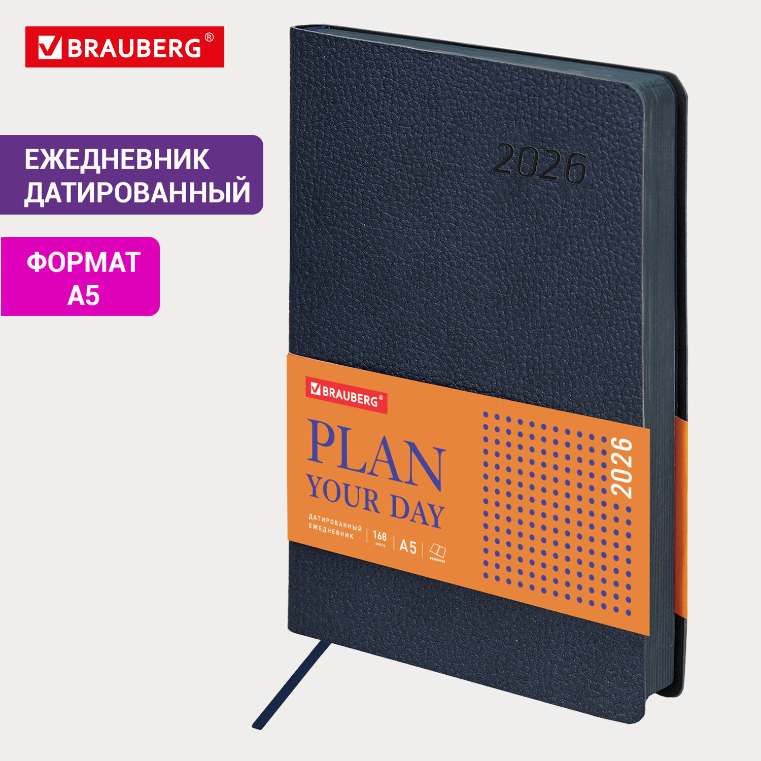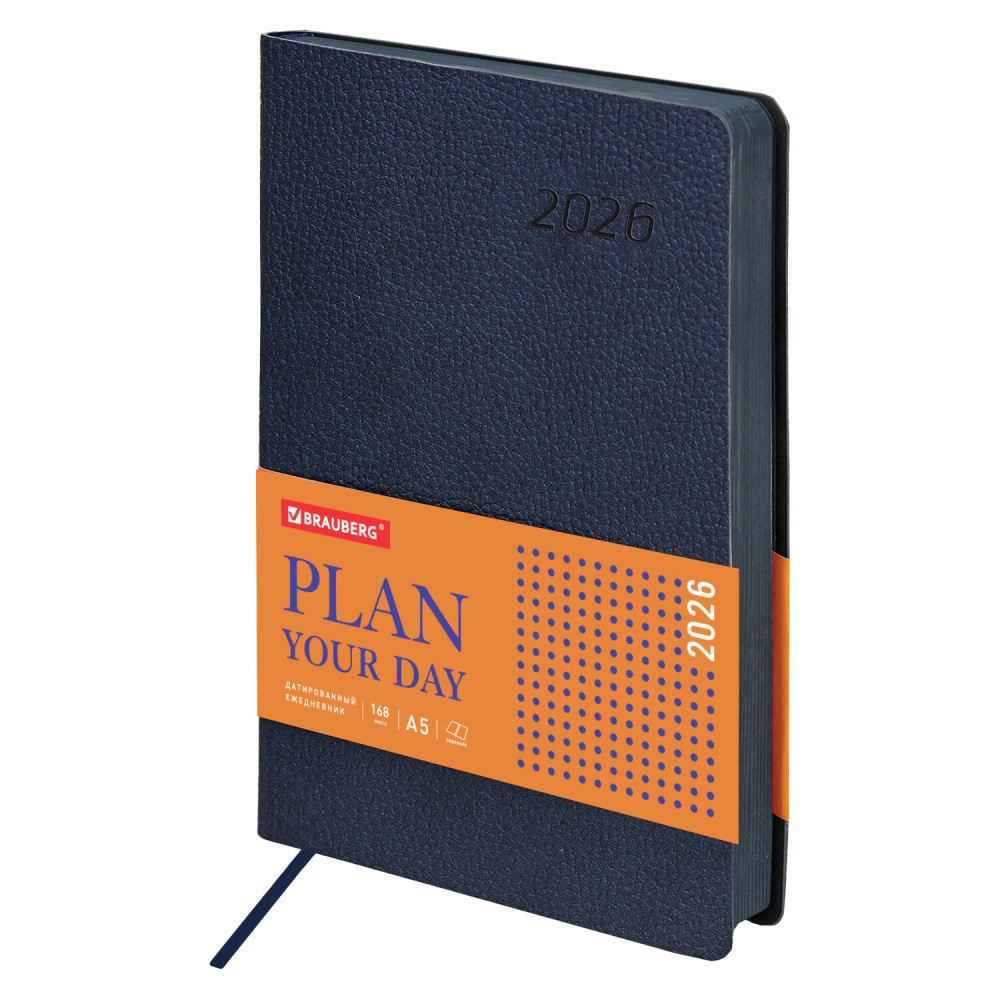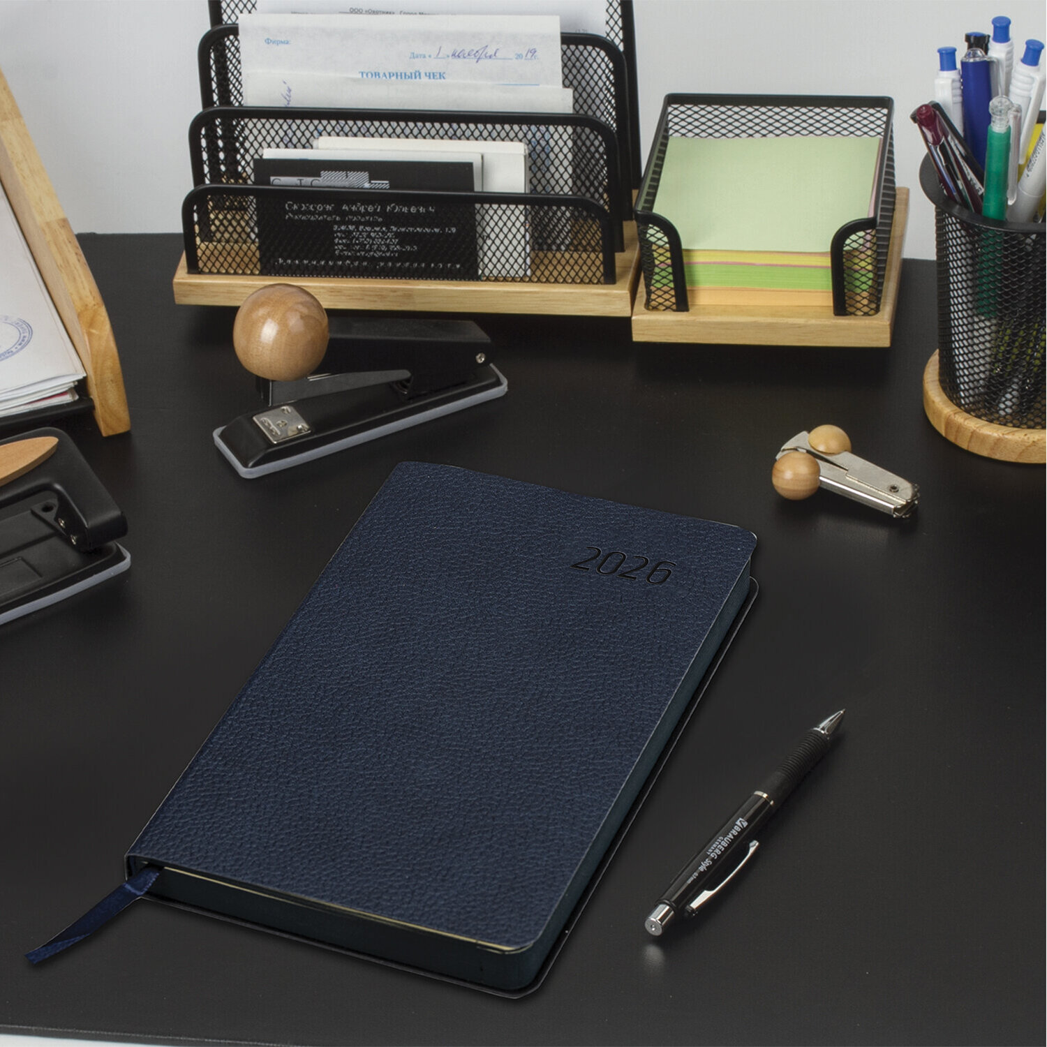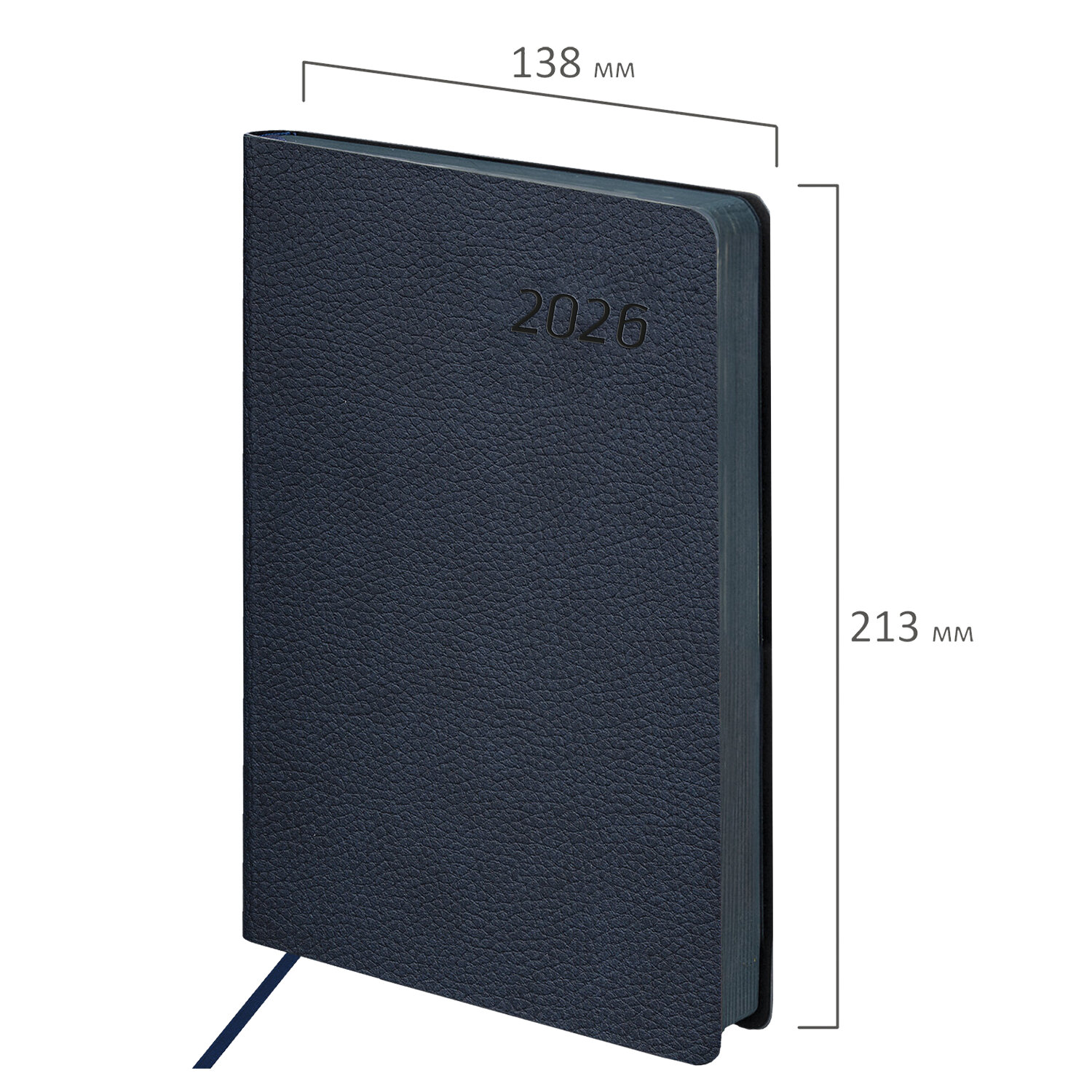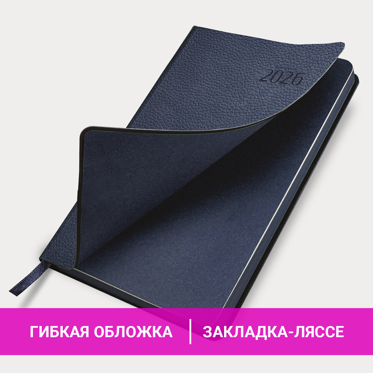 Ежедневник датированный 2026 А5 138x213 мм, BRAUBERG "Stylish", под кожу, гибкий, темно-синий, 117096