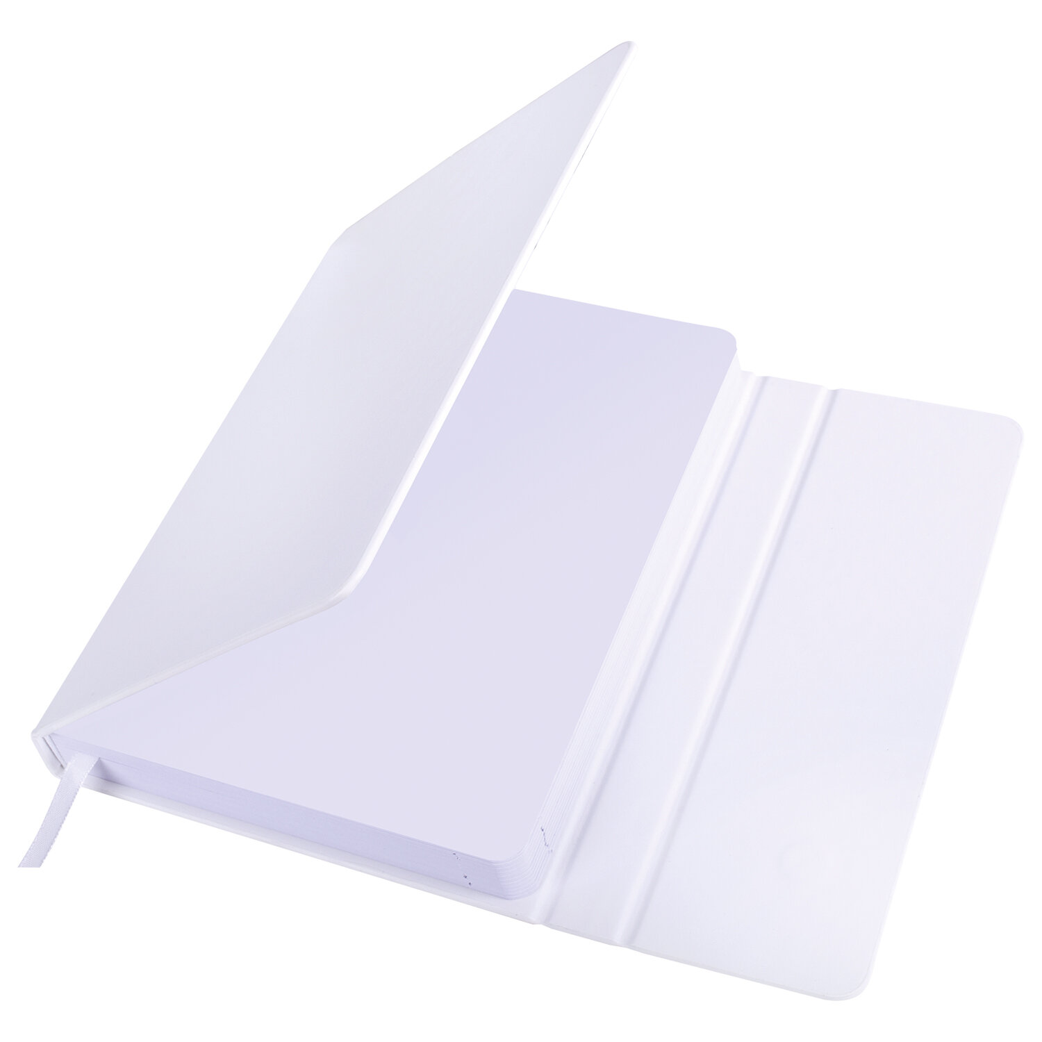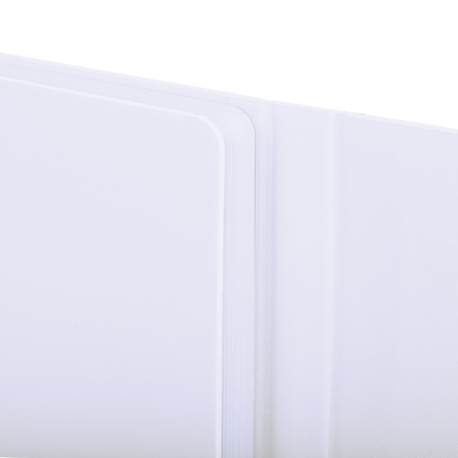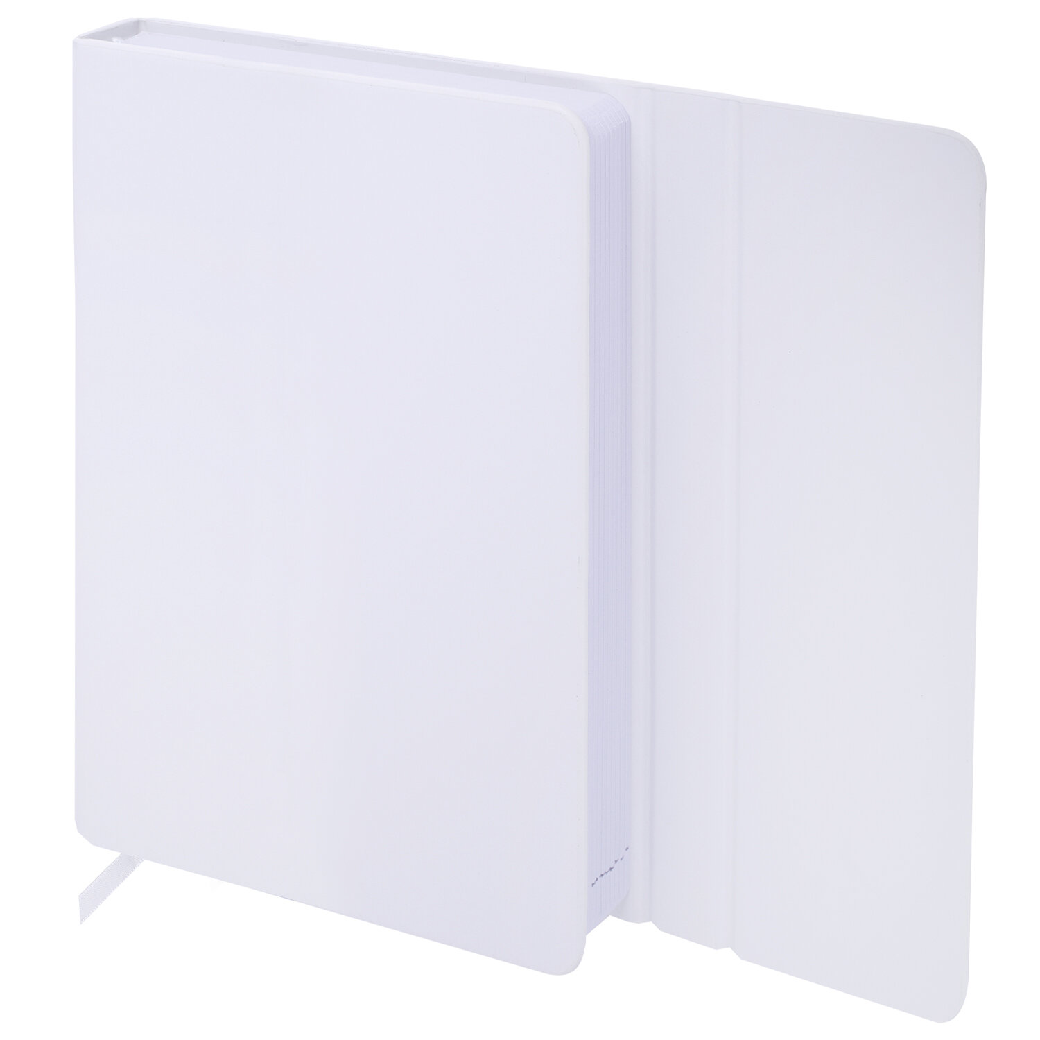 Внутренний блок включает 160 листов белой бумаги плотностью 70 г/м2. Каждая страничка имеет перфорированный угол. Твердая обложка, выполненная в классическом белом цвете и стилизованная под гладкую кожу, фиксируется магнитным клапаном, поэтому ежедневник не откроется в сумке или портфеле и страницы не помнутся.
