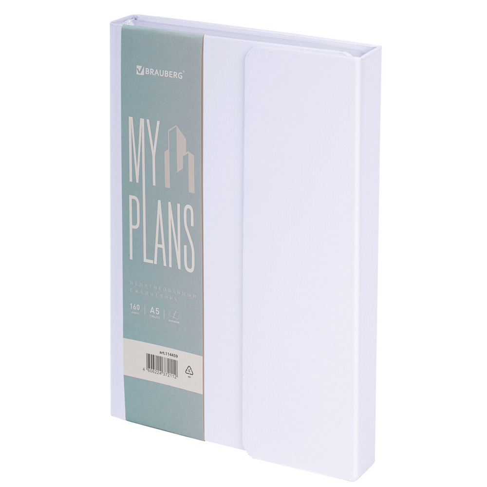 Ежедневник недатированный А5, 138х213 мм, BRAUBERG "Towny", под кожу, магнитный клапан, 160 л., белый, 114459