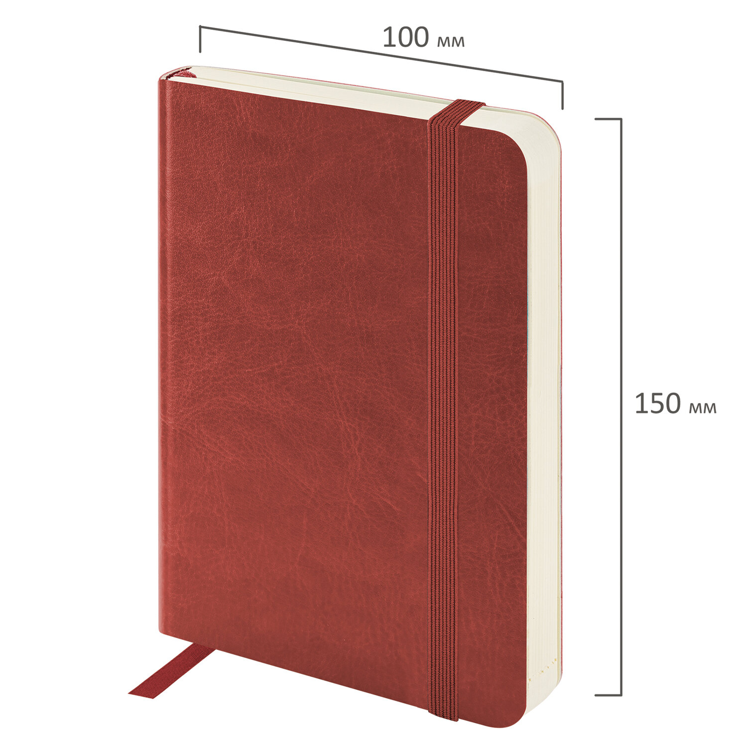 Внутренний блок включает 160 листов тонированной бумаги плотностью 70 г/м2. Каждая страничка имеет перфорированный угол. Благодаря малому формату А6 (100х150 мм) ежедневник удобно использовать как в офисе, так и на выездных деловых встречах. Мягкая (интегральная) обложка стилизована под гладкую кожу. Подходит для горячего тиснения. Снабжен резинкой-фиксатором, благодаря чему ежедневник не откроется в сумочке или портфеле и листы не помнутся.