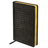 Твердая обложка, стилизованная под кожу крокодила, подходит для горячего тиснения. Срез ежедневника фольгирован под "золото", что придает ему особый шарм. Дополнением является закладка-ляссе, с помощью которой при необходимости можно быстро открыть ежедневник на нужной странице. Ежедневник снабжен обширным справочным материалом. В конце имеются 6 страниц для записей и заметок.